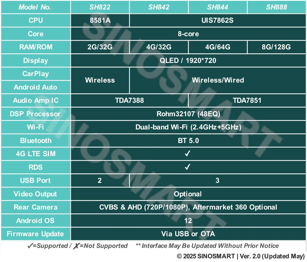 * Если вы уже установили или планировали установить внешний усилитель послепродажного обслуживания, пожалуйста, сначала свяжитесь с нами для получения подробной информации о совместимости перед размещением заказа.
