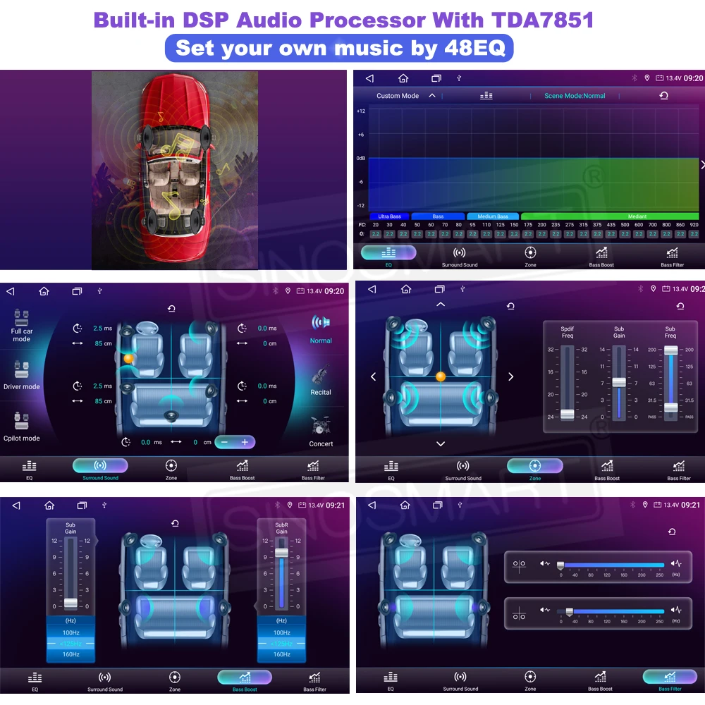 Встроенный аудиопроцессор DSP обеспечивает высококачественный звук с независимым контролем передних и задних динамиков.Настройка 48-диапазонного эквалайзера обеспечивает точную настройку для исключительного впечатления от прослушивания!