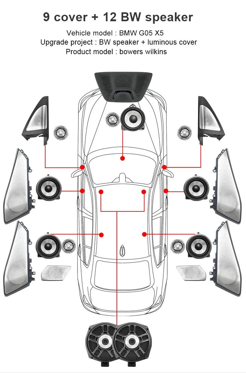 Светодиодный для передней и задней двери, светящаяся крышка твитера, светящееся ночное освещение, отделочный динамик, аудио BMW G05, X5, G07, X7 серии