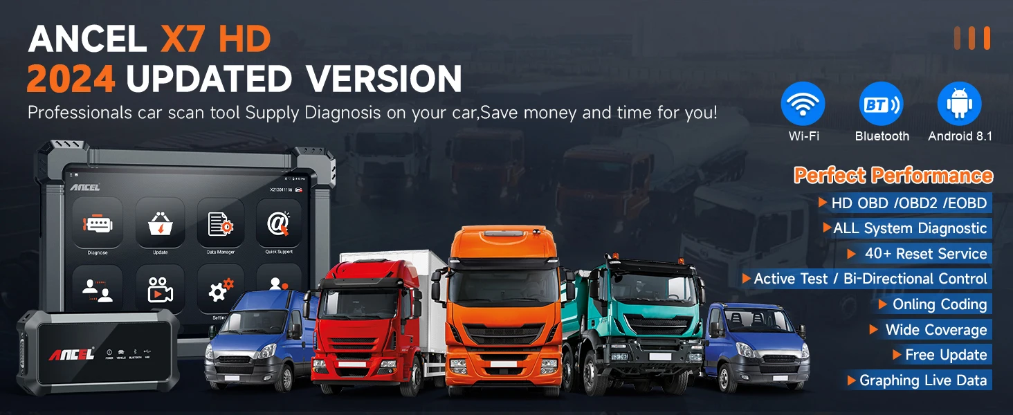 Выберите ANCEL X7 HD, чтобы решить проблему вашего автомобиля и грузовика!!