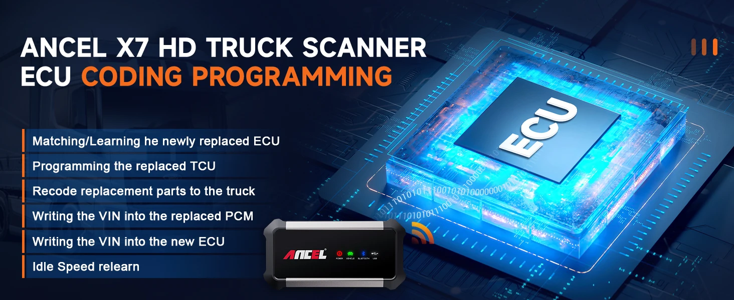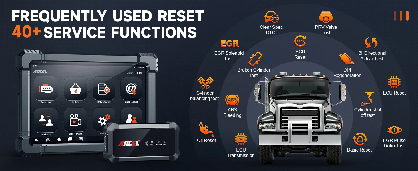 - ANCLE X7 HD Truck Scanner:SAS/TPMS reset;injector Coding
