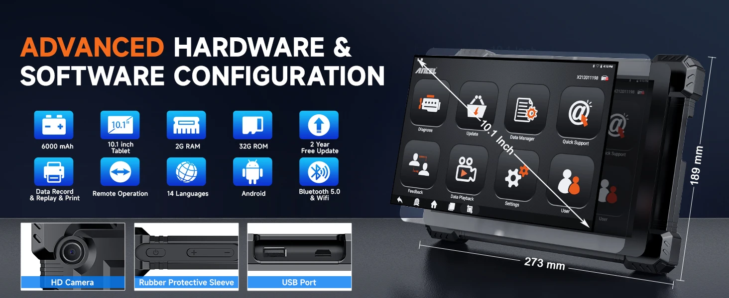ANCEL X7 HD 10.1-дюймовый сканирующий инструмент дизельного грузовика оснащен усовершенствованным кодированием ЭБУ, поддерживает калибровку уровня, обучение и регулировку холостого хода, обучение управлению распределительным валом, адаптации блока управления, коды форсунок, чтение/запись VIN, дополнительный набор скорости автомобиля и т. д...ПОЖАЛУЙСТА, ОБРАТИТЕ ВНИМАНИЕ, что коды ЭБУ несовместимы со всеми транспортными средствами, пришлите нам свой VIN.# чтобы проверить совместимость автомобиля.