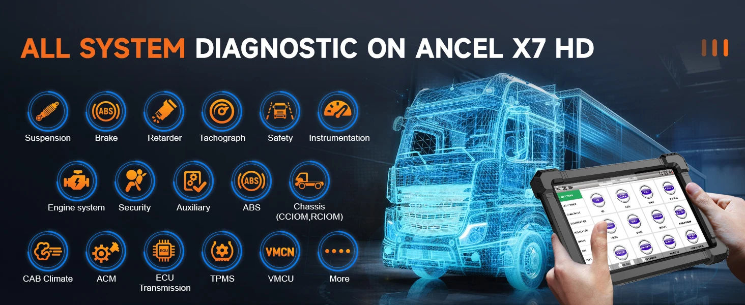 Другие преимущества диагностического инструмента для тяжелых грузовиков ANCLE X7 HD.