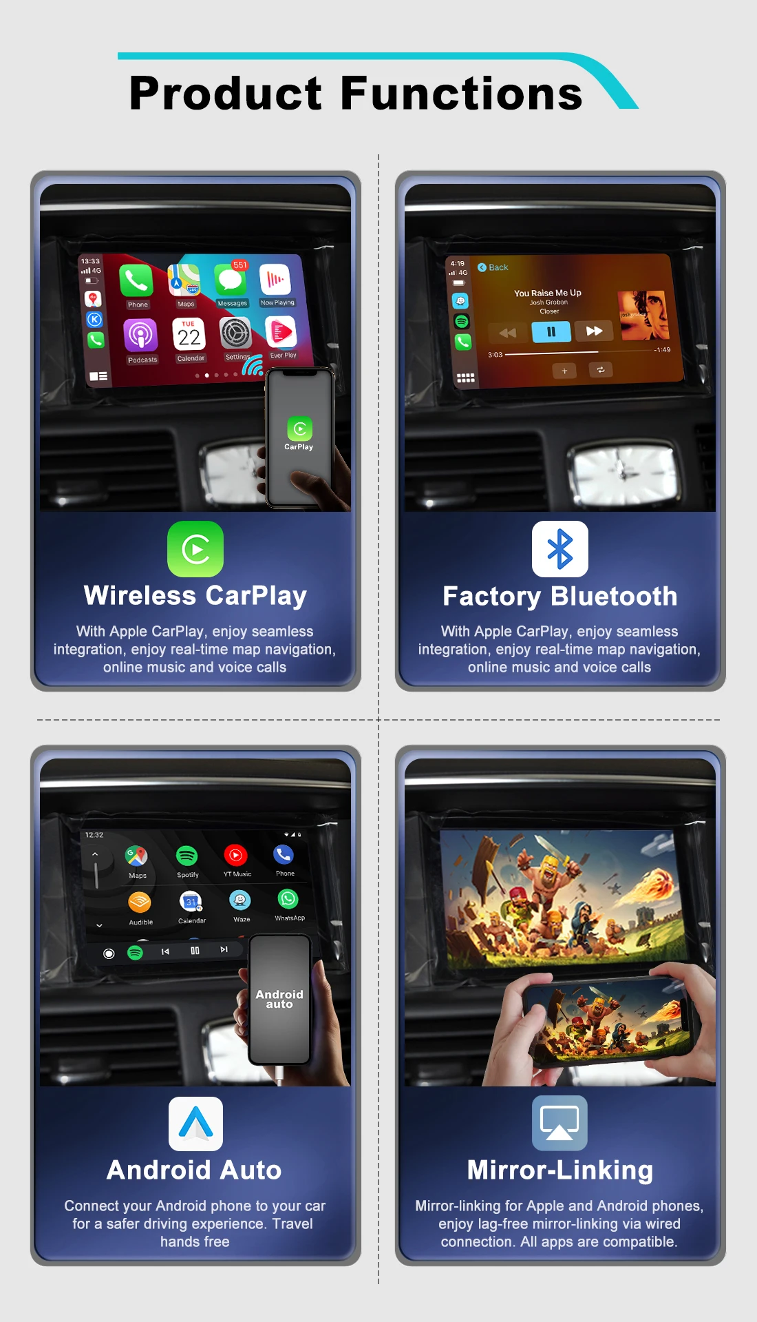 - Functions 1:Wireless Apple Carplay