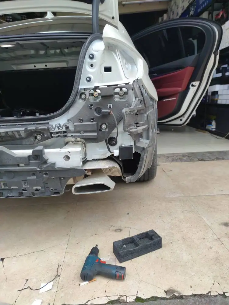 Снимите задний бампер и определите положение установки модуля радиолокационного зонда.Положение расположено по дуге заднего бампера автомобиля.После сверления установлена основание кронштейна зонда.