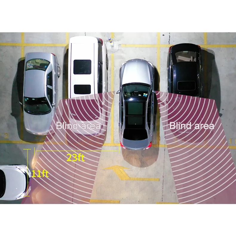 Большое расстояние обнаружения Когда система включена, система начнет обнаруживать движущиеся объекты в слепой зоне позади автомобиля 26*230 футов.