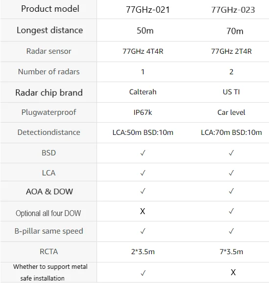 - Radar sensors:77GHZ millimeter wave radar