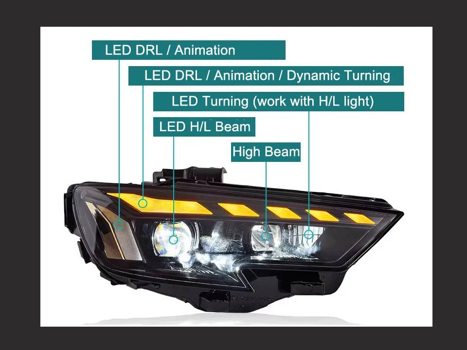 1 пара светодиодных фар в сборе для Audi A3 S3 8V 2017-2020 Sedan Sportback фары Plug and Play со светодиодной подсветкой DRL с динамическим поворотом