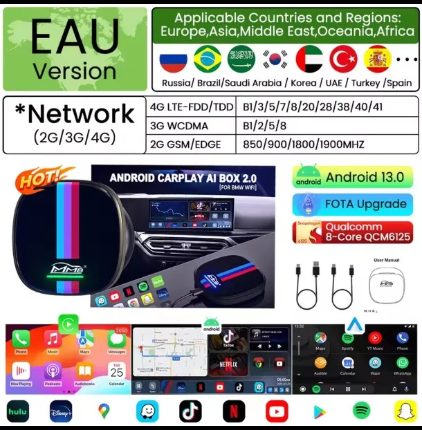 MMB MAX Android 13 CarPlay Ai Box 8 + 128G QCM6125 8 ядер Netflix и YouTube GPS 4G LTE для BMW ID6 ID7 ID8 ID9 Мультимедийная видеобокс