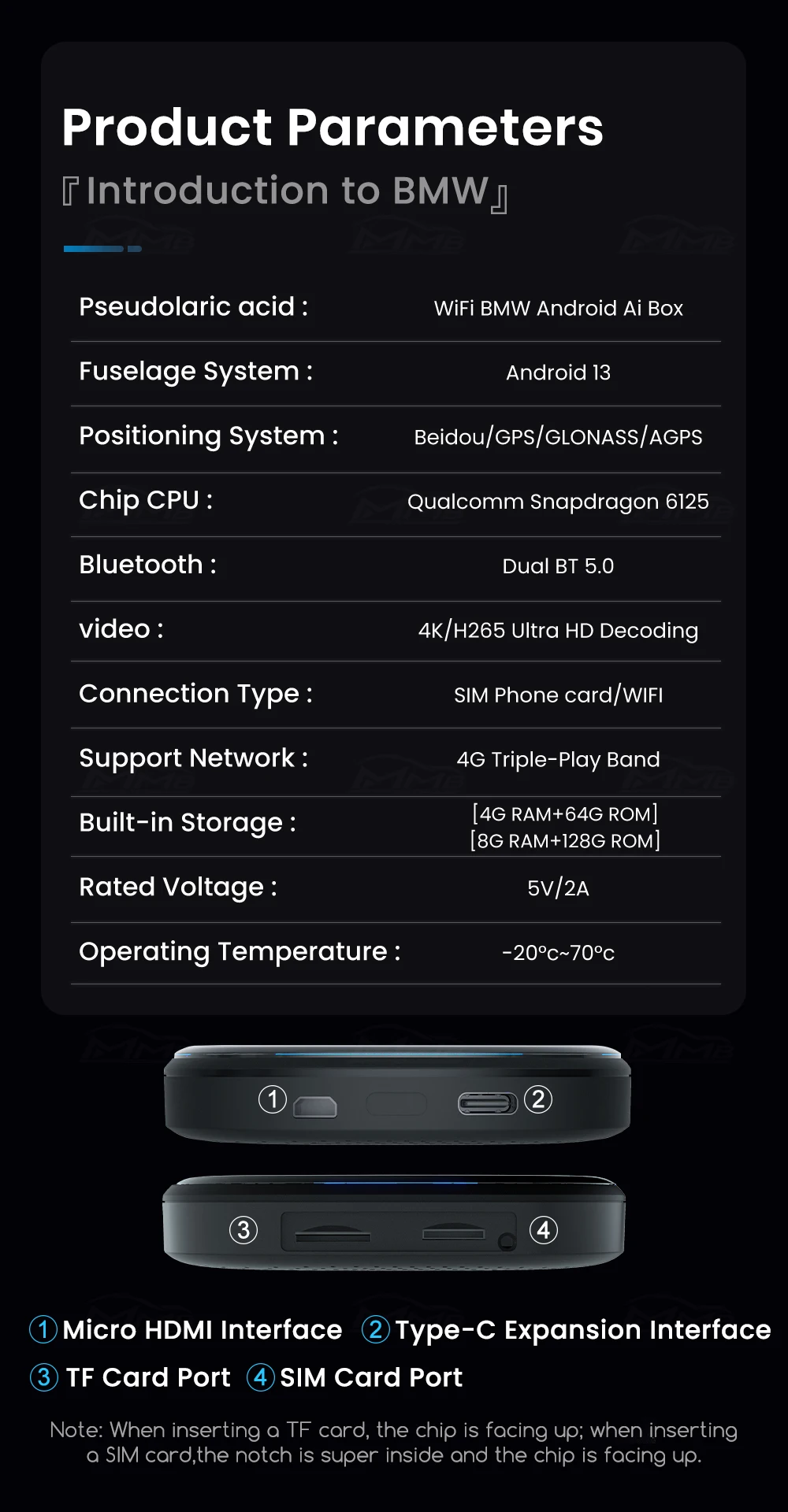 - Product Name 1:MMB Wireless CarPlay Ai Box for BMW ID6 ID7 ID8 ID9 E90 F30 E70 F20 X3 X5
