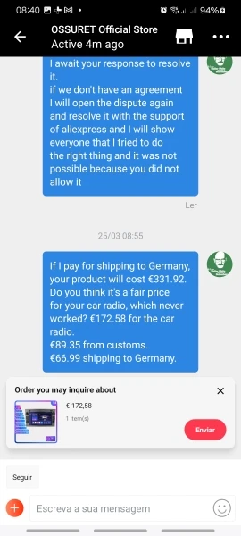 Я получил в течение 3 дней в Испании, упаковка не повреждена, никаких повреждений от транспортировки, продавец является одним из лучших в AliExpress, отдел с ним и служба поддержки клиентов очень хорошие, предлагаем поддержку во время гарантии и предлагаем решения для разрешения любых вопросов о продукте, Я покупаю 2-й раз в магазине OssuretOfficialStore, я настоятельно рекомендую лучший вариант и выбор, чтобы сделать покупку у него. Я очень доволен продавцом и предоставленным обслуживанием, комуникация 10 +, продукт работает как шелк, хорошо сидит и имеет приятный интерфейс. Хорошо работайте.