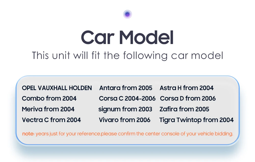 ПРИМЕЧАНИЕ:Годы только для справки, пожалуйста, подтвердите центральную консоль вашего автомобиля перед подачей заявки.