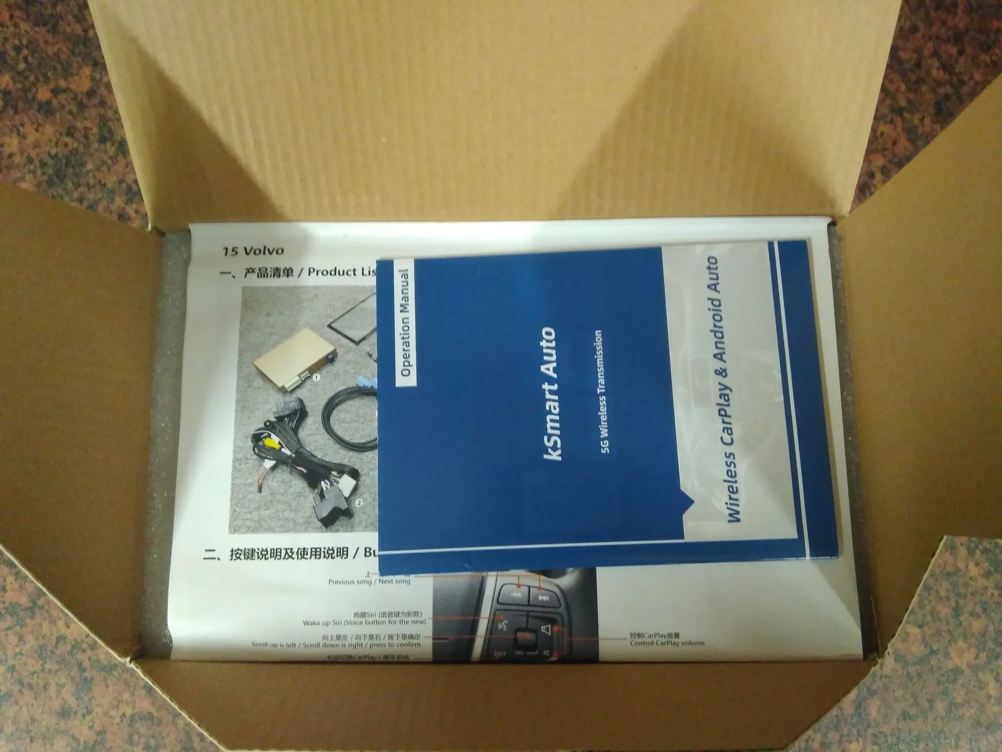 Очень хорошо упаковано, коробка пришла абсолютно целая. Carplay уже установил в машину и опробовал - все работает как заявлено. Чтобы заработал звук, для тех, у кого нет aux - нужно докупить адаптер usb. После подключения нужно в основном головном устройстве выбрать iPod, чтобы появился звук. Проверено на Volvo V40 CC MY2015
