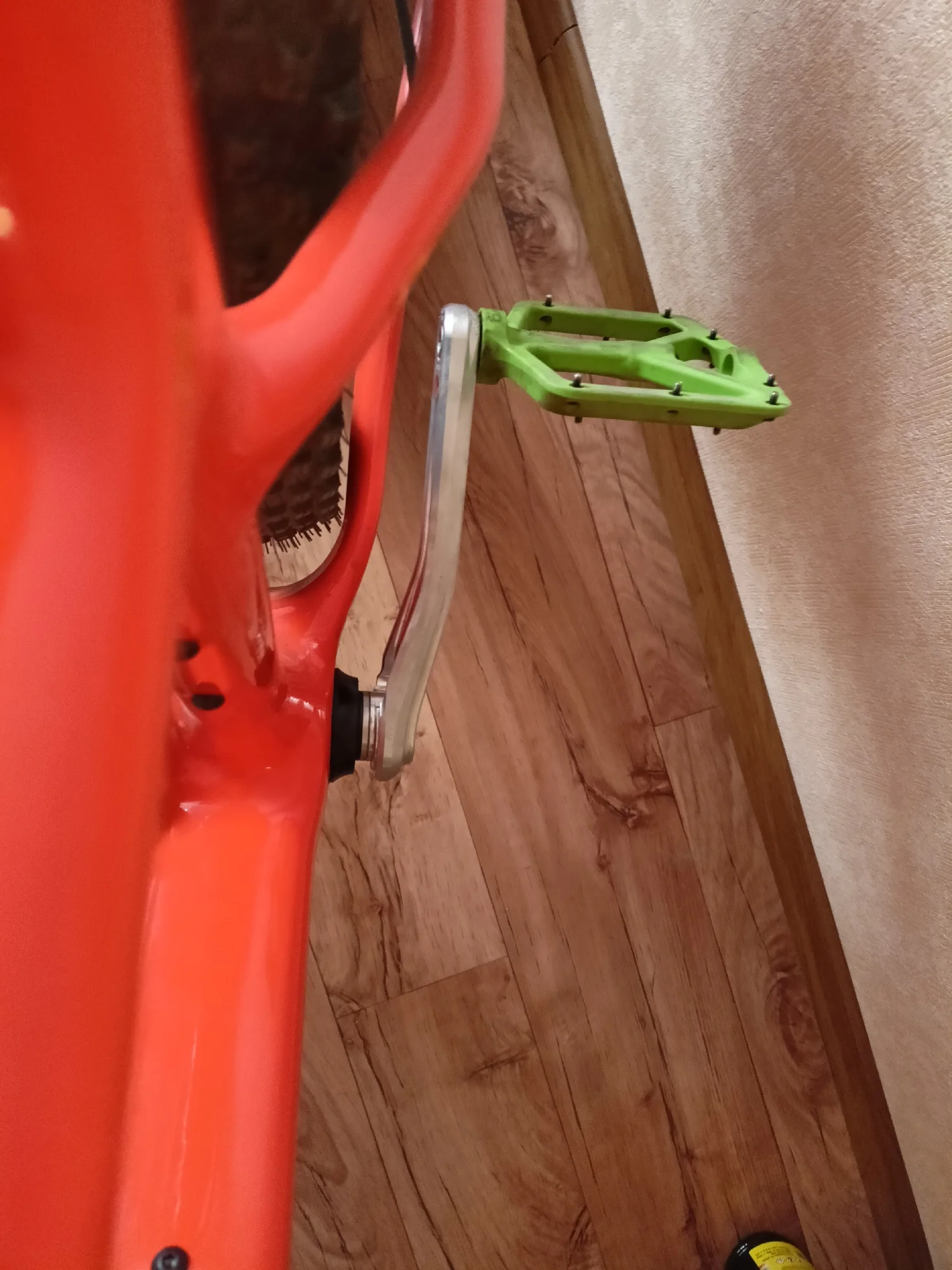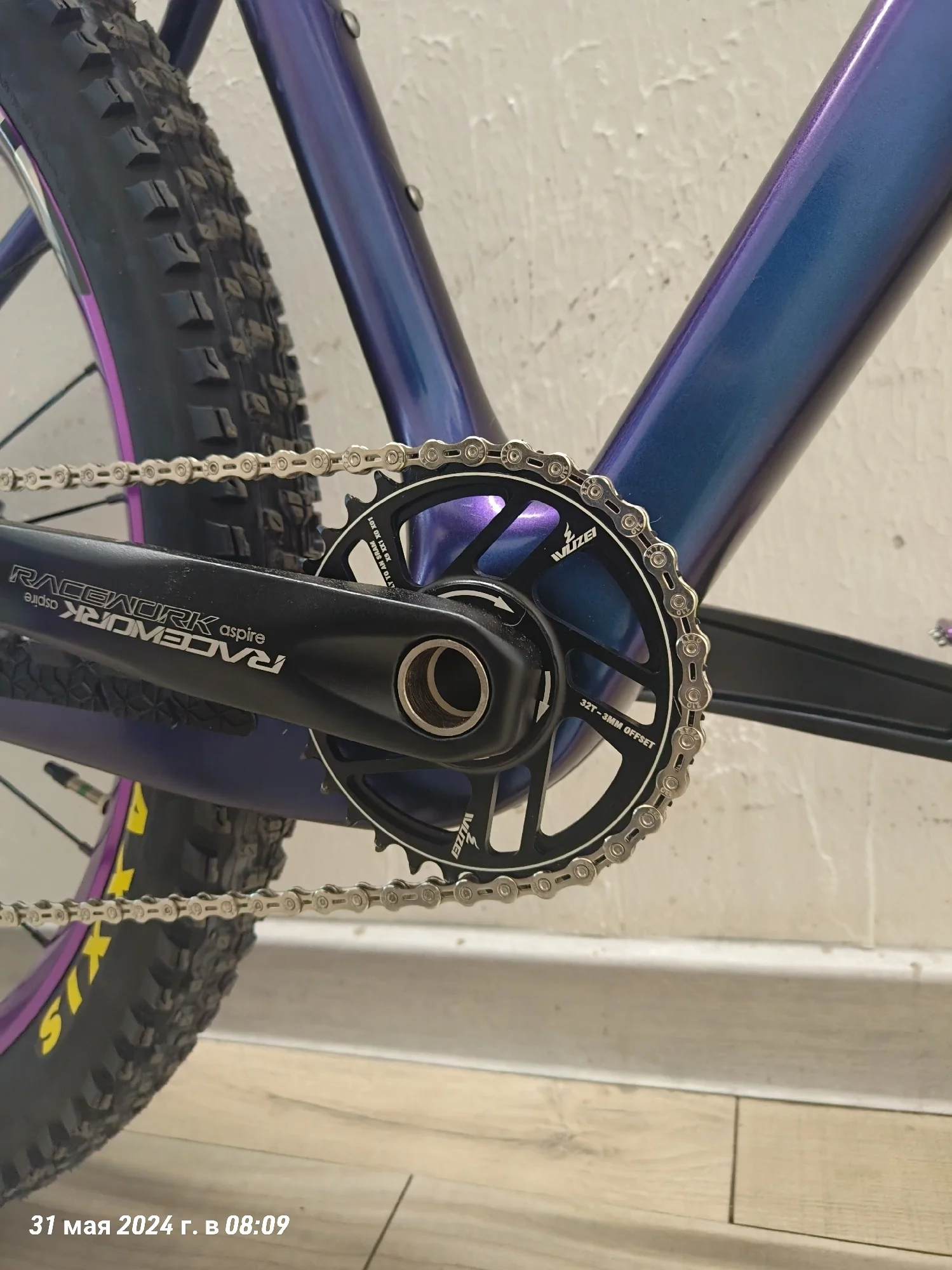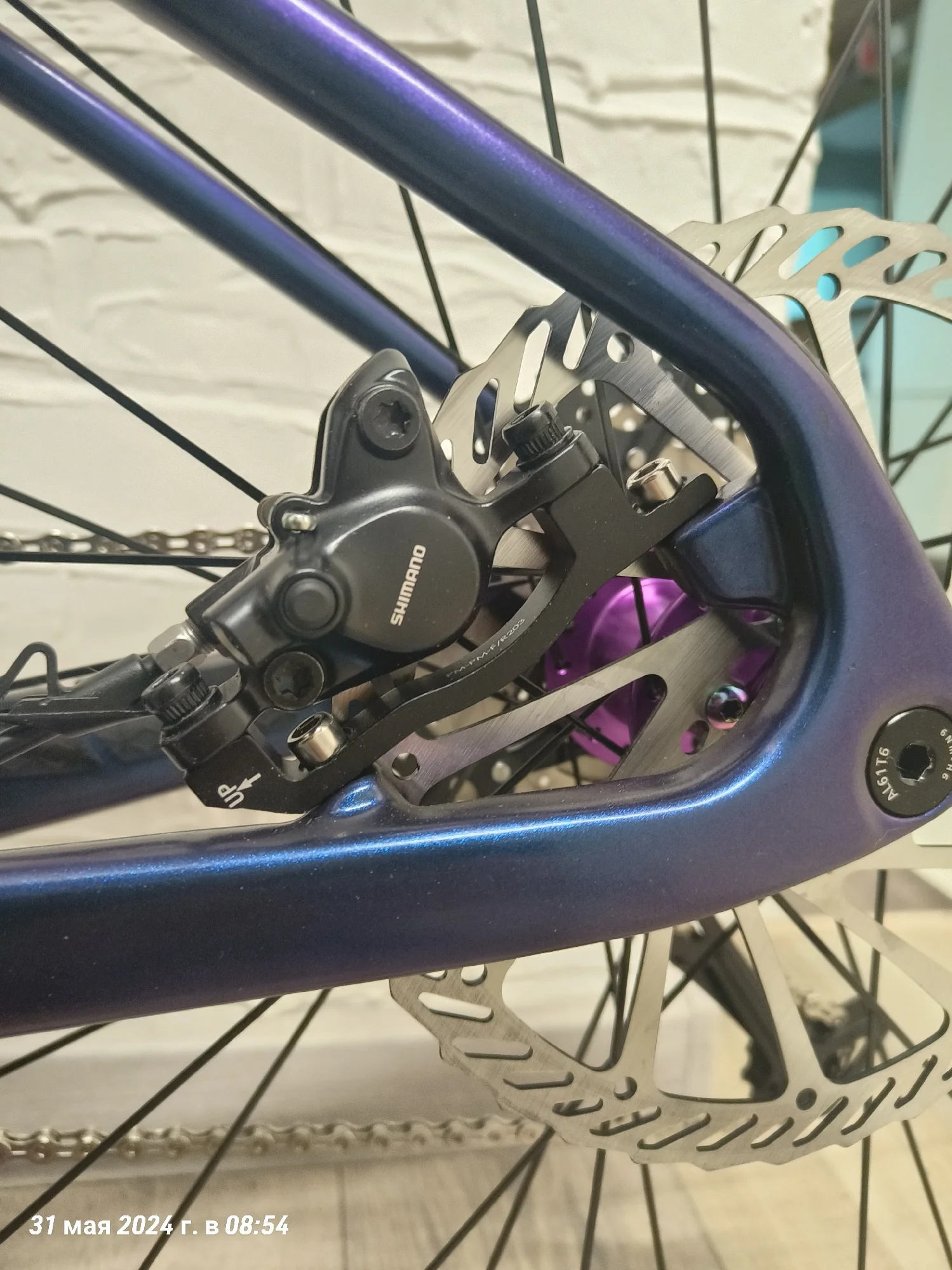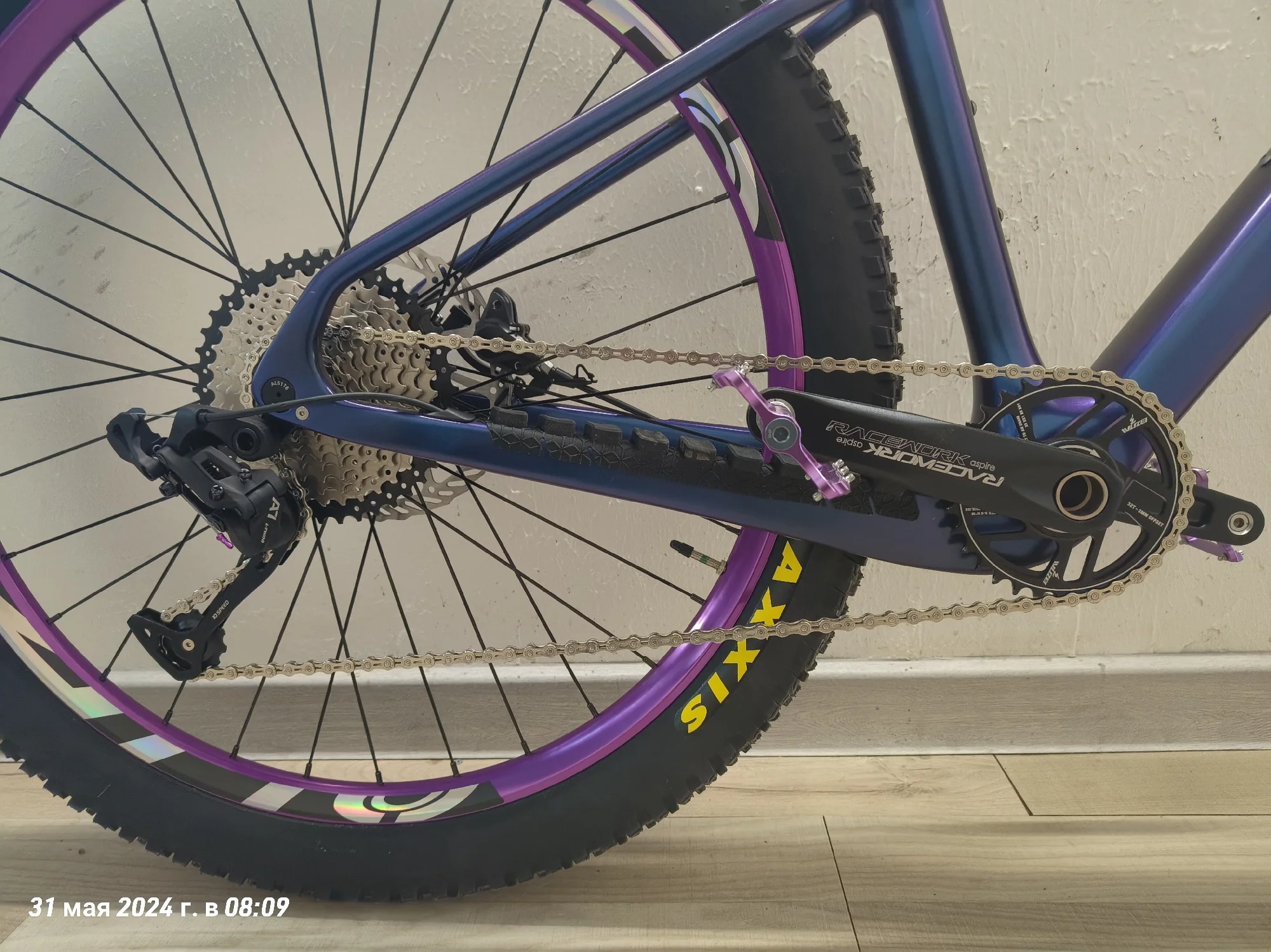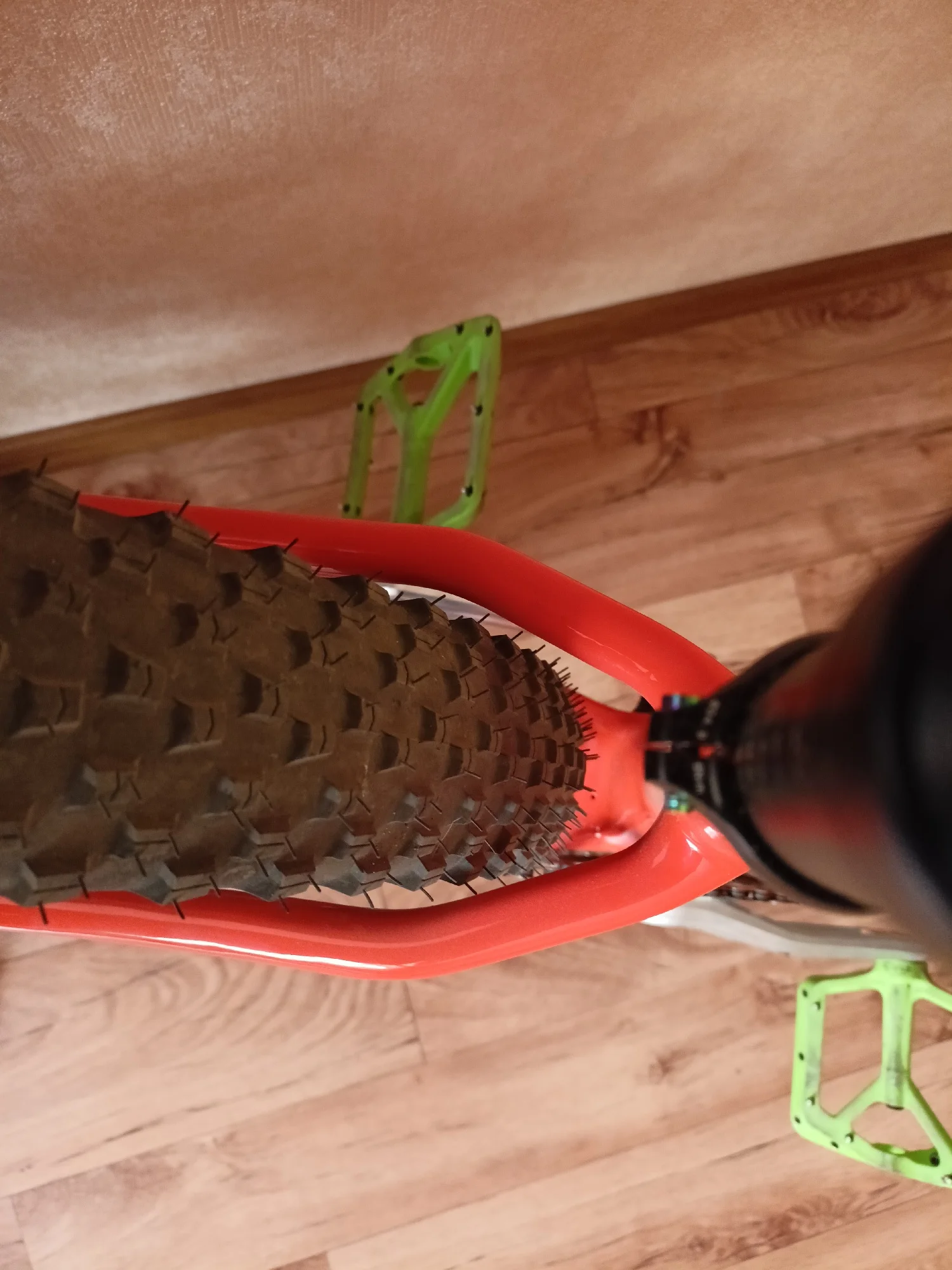 Ну вот и я напишу отзыв о раме. Рама пришла очень быстро, за неделю, неожиданно конечно. Красили раму сами, цвет хамелеон "неоновый космос". Выход для рубашек выглядит удобно, протягивать тросы конечно очень сложно, с переключателем не сильно мучилась, но вот с гидролинией пришлось повозиться, т к прокладывала ещё шум трос. Рама для 29 колес, но я установила 27,5 на 2,6 maxxis recon, обода внутренний 29 мм, ширина покрышки получается 65 на таком внутреннем ободе. Думаю, что влезут и на 2,8 дюймов покрышки, т к место внизу есть. Про подшипники в рулевой. Нижний подшипник лёг отлично в свое место, не выпирает снизу. А вот верхний нет, выпирает, из-за этого есть щель, надеюсь она не критична, т к есть люфт, но мне не нравится. Шатуны выбирала долго, не знала какие подойдут, но сразу скажу можно смело брать 98 мм, внутреннее расстояние шатуна для каретки. На счёт место под тормоз, изначально там под 160, но мне захотелось на 203, купила переходник на 203, но он видимо на место, которое сверху идёт, а на этой снизу, ну и пришлось пилить переходник. Думала, что будут проблемы с настройкой тормоза, но все идеально и быстро настроилось. Собрала на днях, т к ждала все. Сегодня 31.05.24 первый раз поеду на нем, если что дополню отзыв.