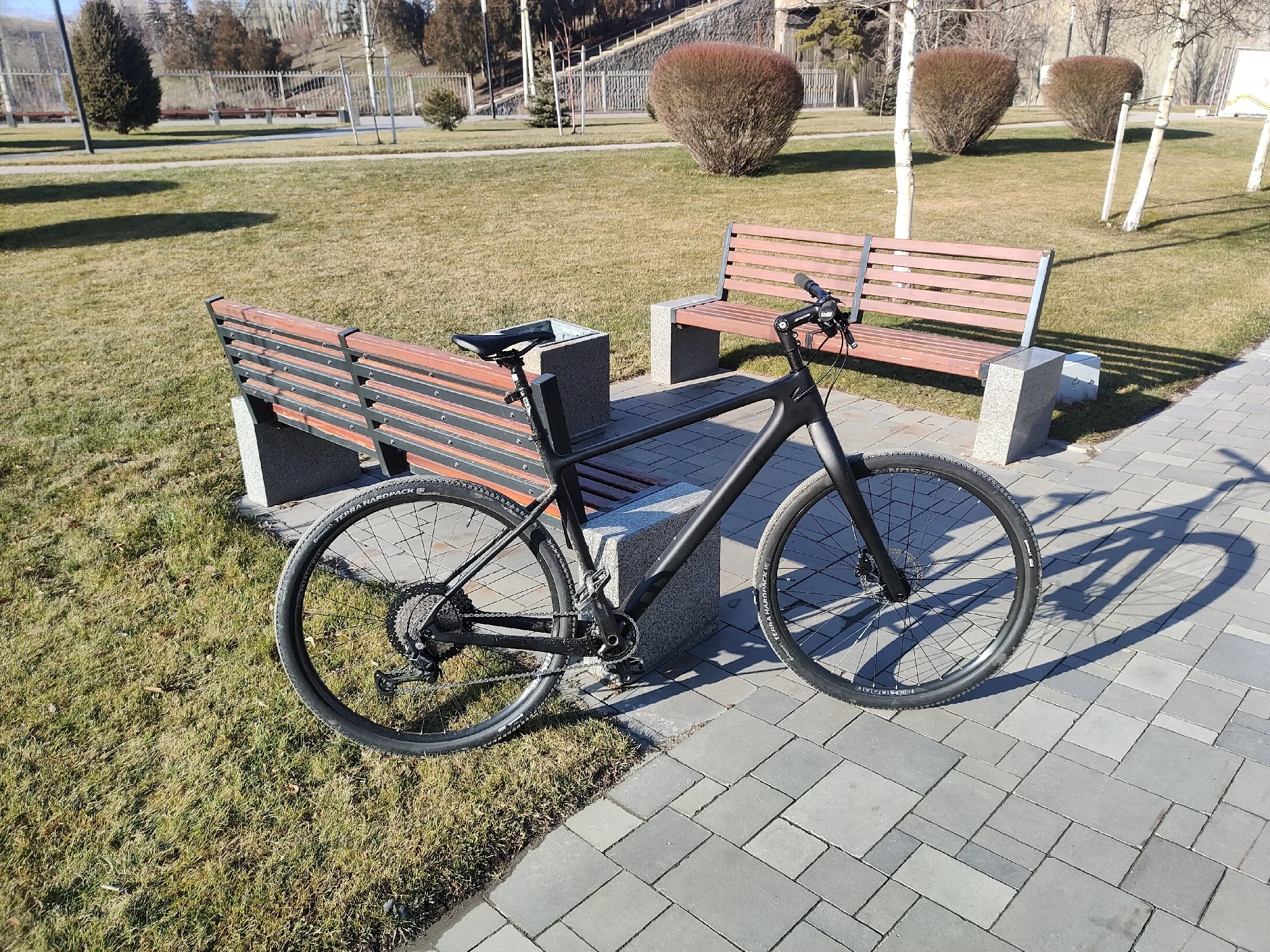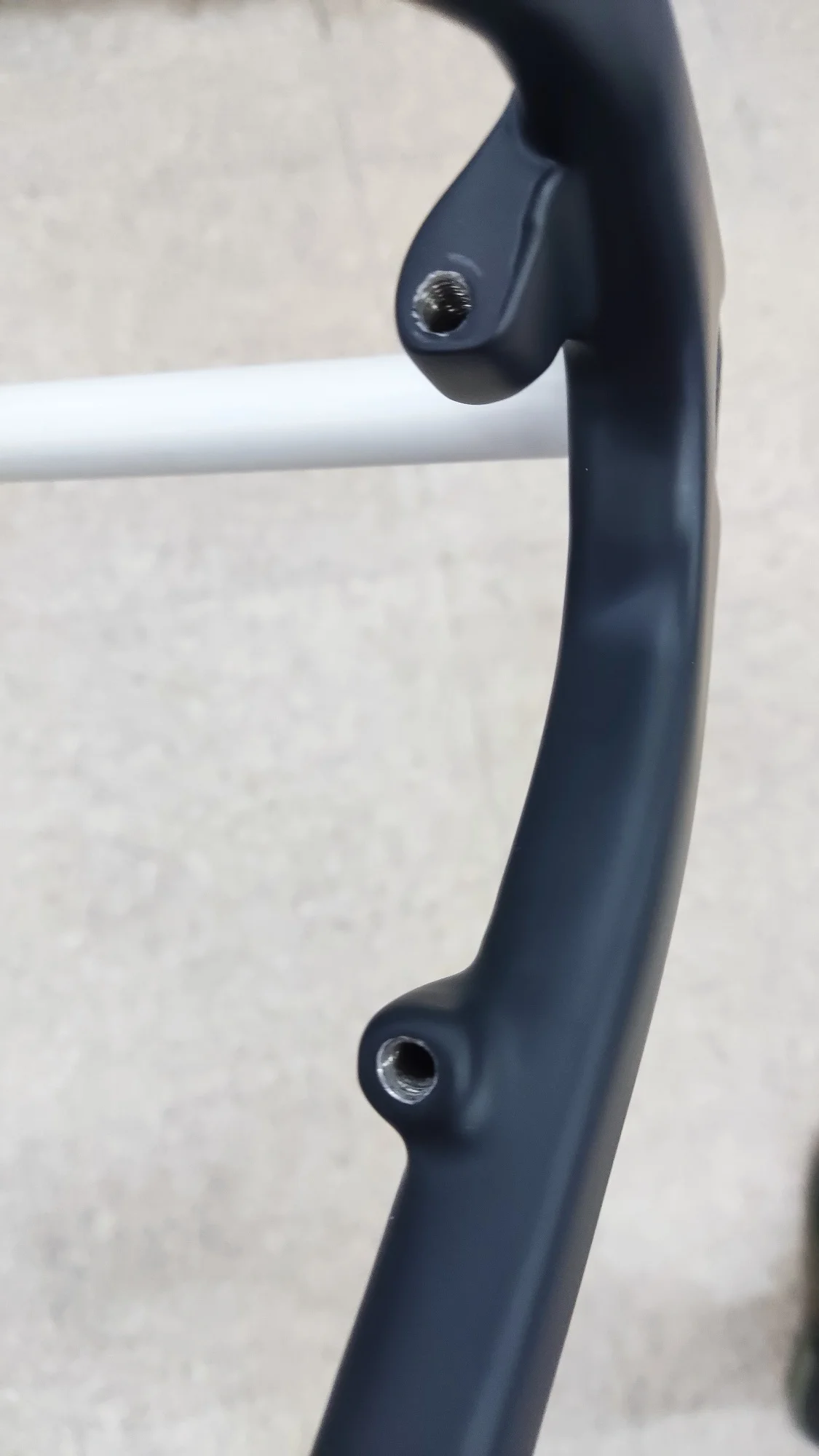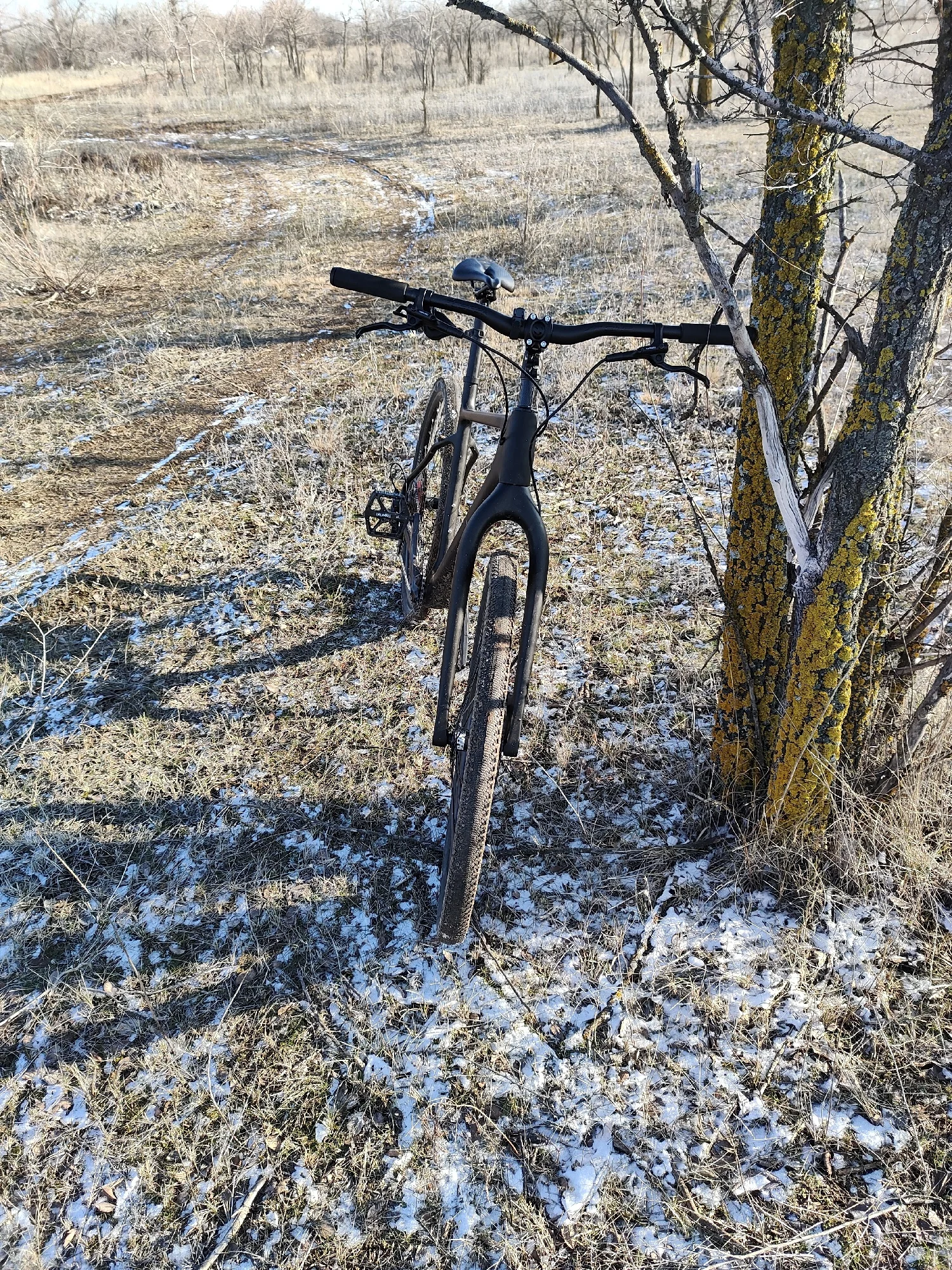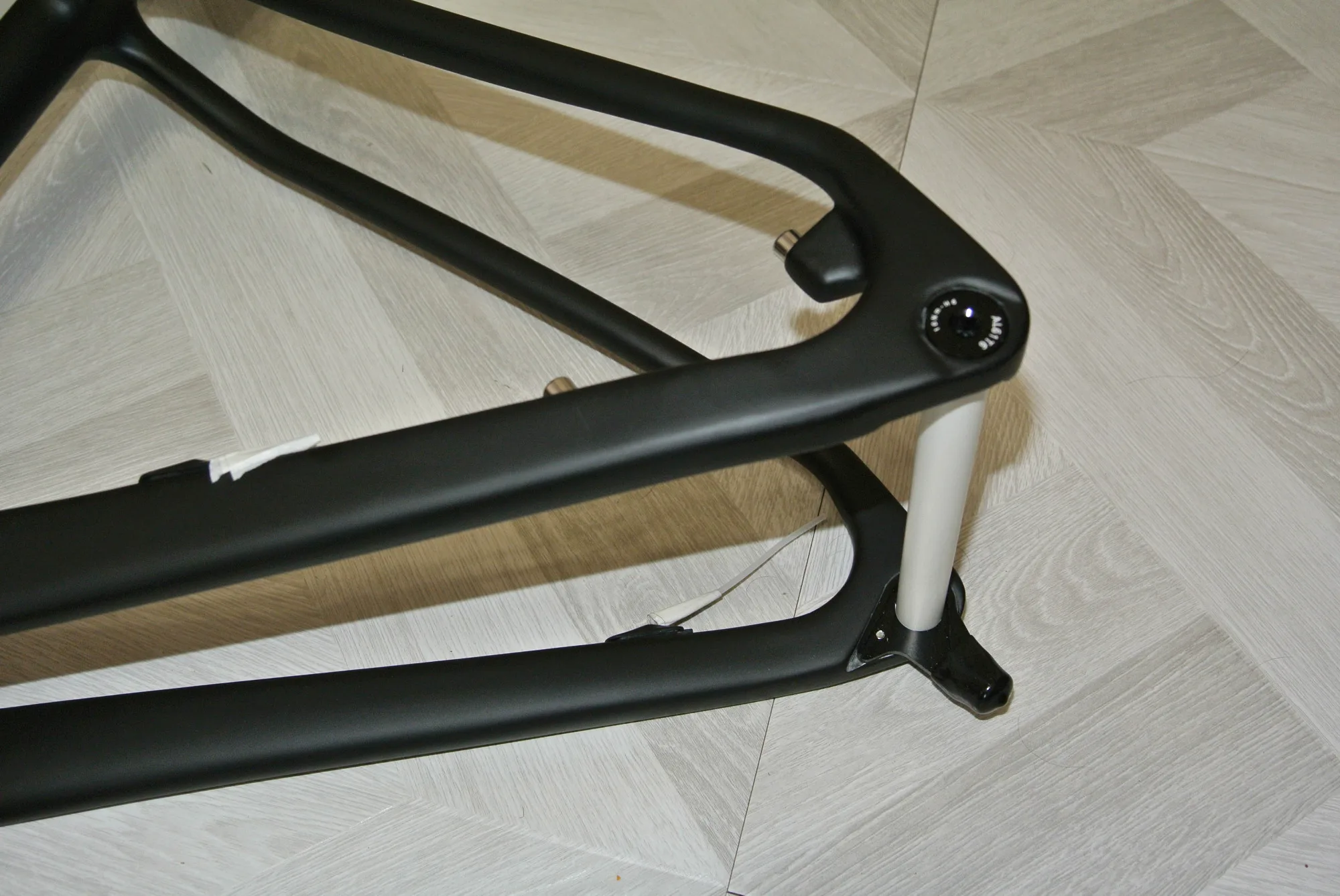 Рама целая, упаковка хорошая. -1 звезда за не оторцованые места крепления калипера. Цвет при заказе указывал серый матовый (grey), а как видно по фото - антрацит или графит.