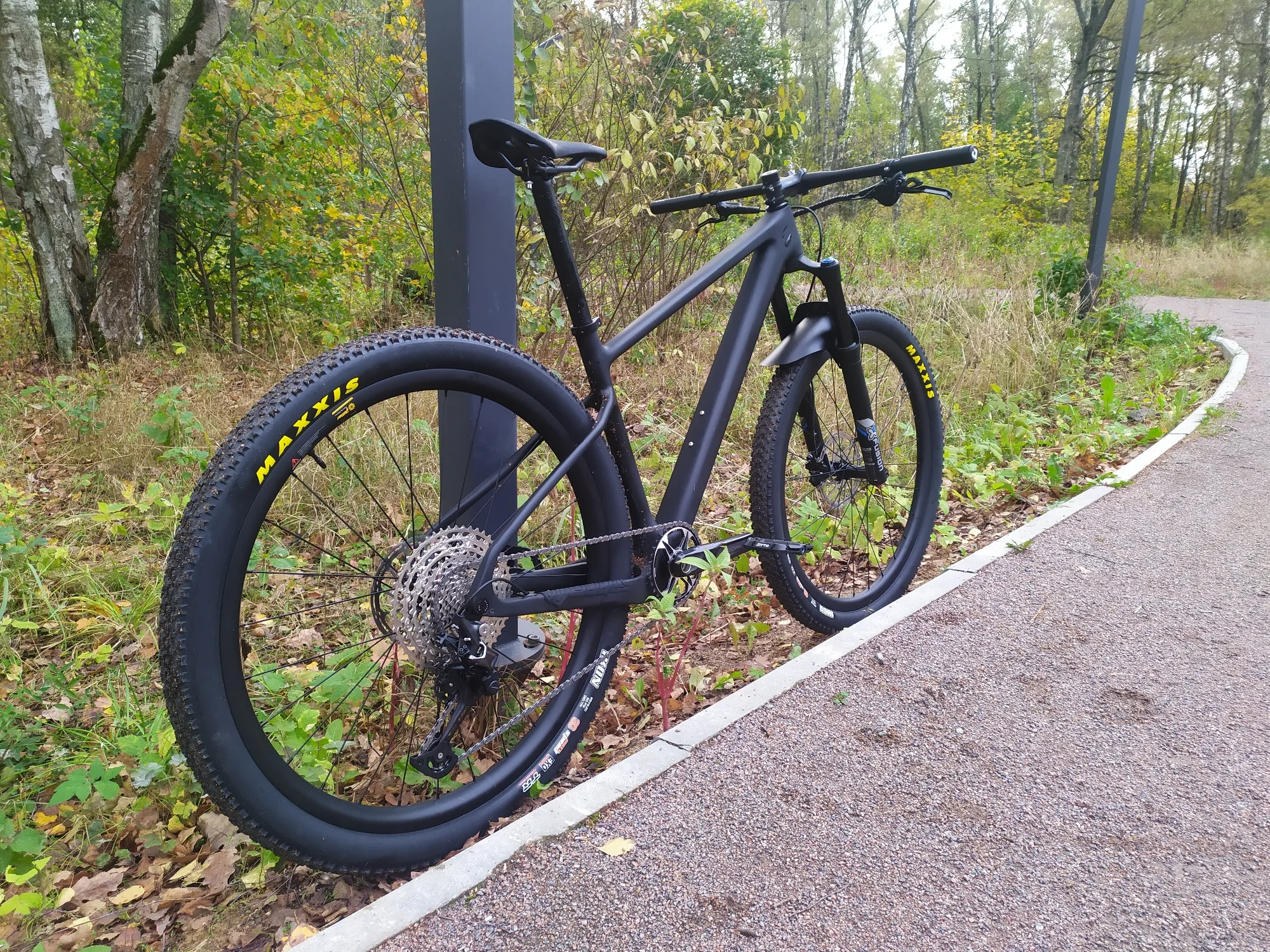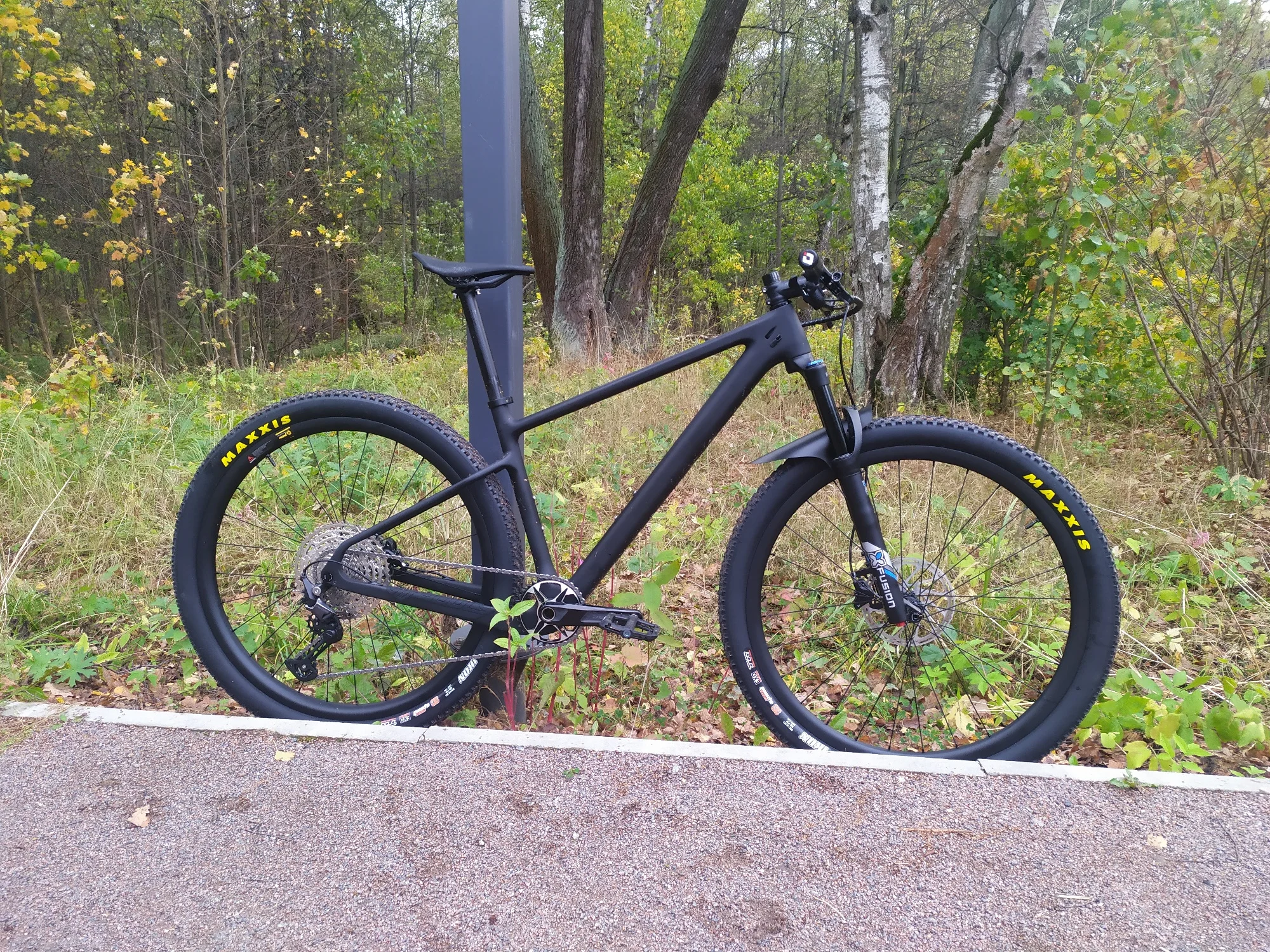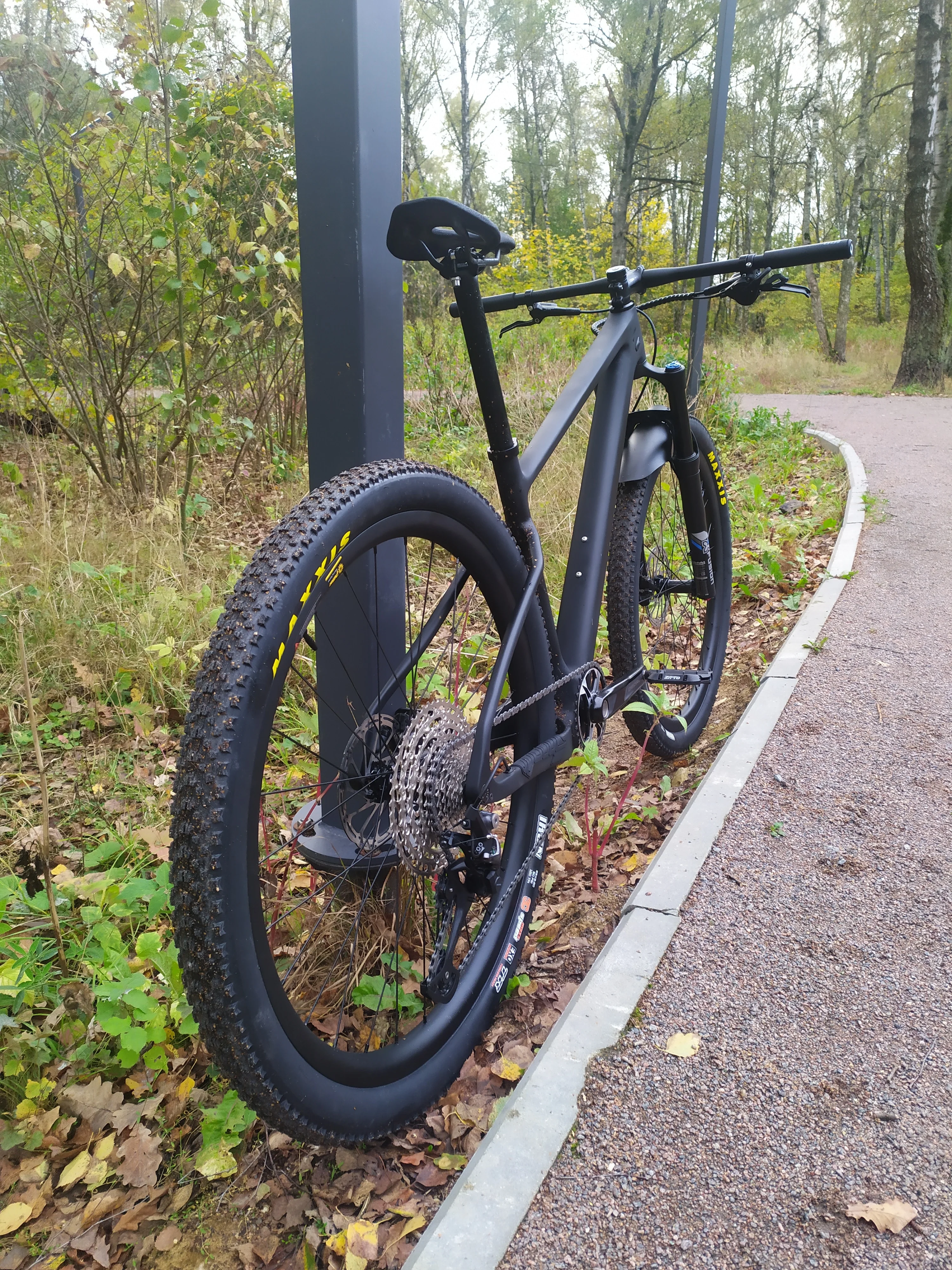 Вторая моя рама этого бренда и модели, первая для меня, вторая для жены. Тут собрали на 27.5+ обода 35мм внутрянка/2.8 CrossKing вес 10.9кг вилка Kocevelo(говно-сильный флекс штока, от чего рулевая имеет постоянный микролюфт)