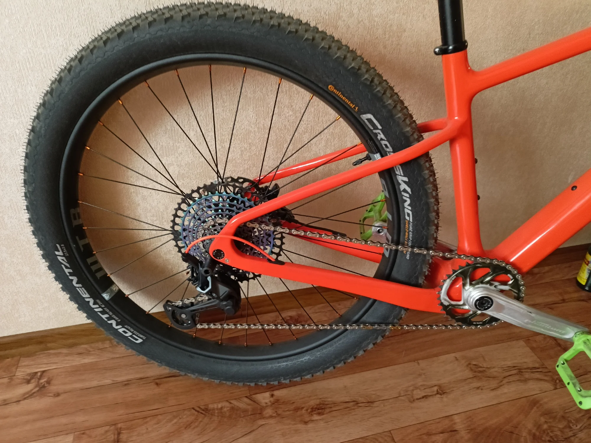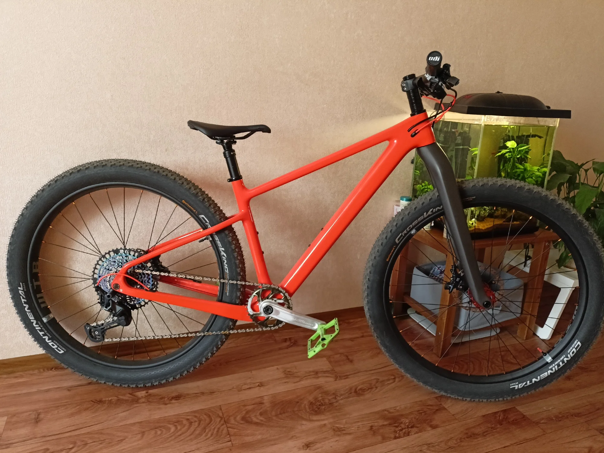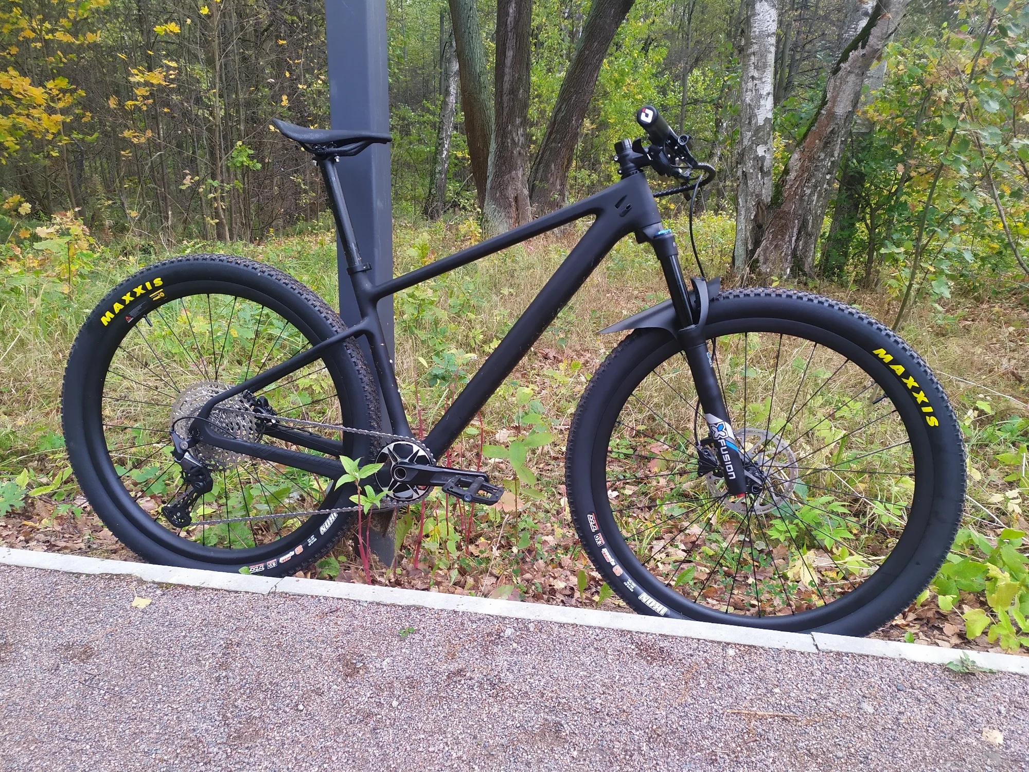 Вторая моя рама этого бренда и модели, первая для меня, вторая для жены. Тут собрали на 27.5+ обода 35мм внутрянка/2.8 CrossKing вес 10.9кг вилка Kocevelo(говно-сильный флекс штока, от чего рулевая имеет постоянный микролюфт)