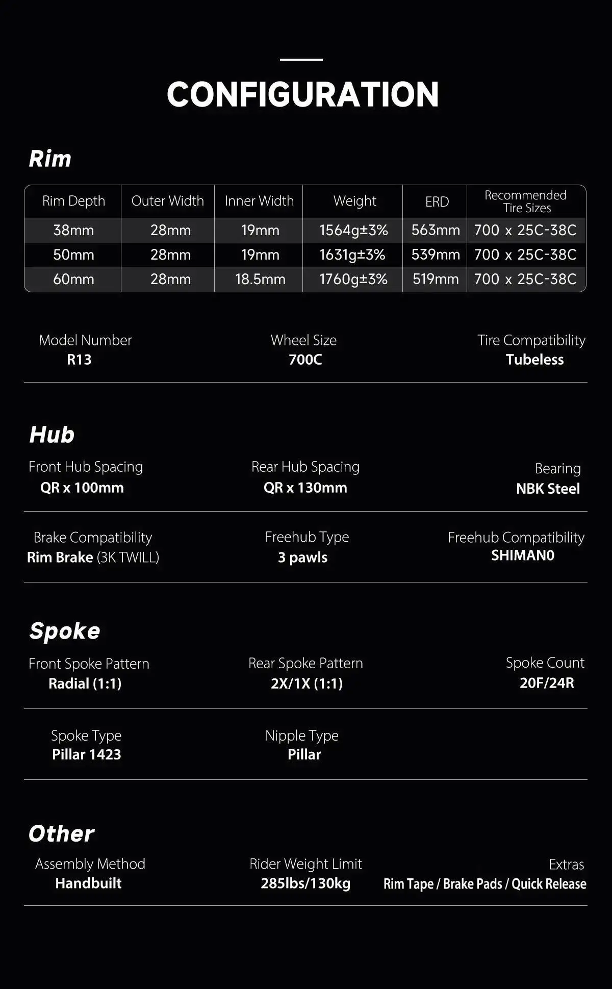 - Rim Depth:38/50/60mm