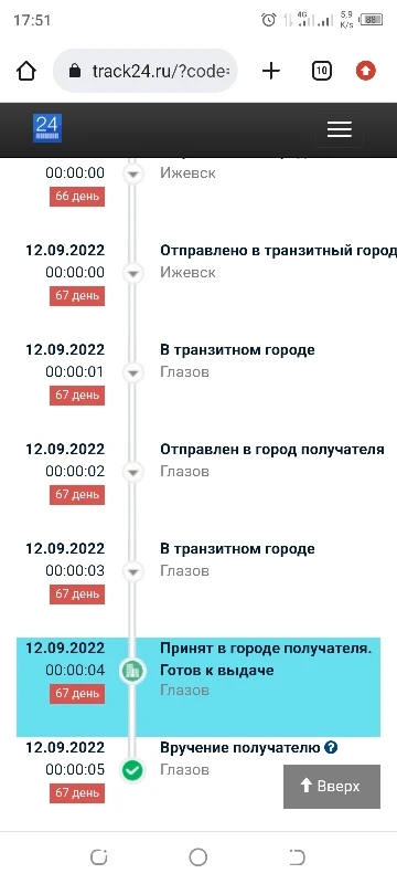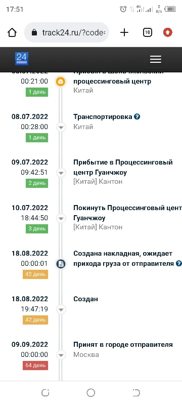 Это худшая доставка для меня, 67 дней. Что за отзывы где пишут дошло за две недели, я зол. У меня вообще очень много было провалов долгих.В какой то момент я думал все - не увижу. Продавца долбил, долбин про доставку, а он ждите. и только когда ему самому надоел я, сказал что посмотрит и вдруг о чудо, лед тронулся, сразу в Москве приняли на доставку, а так с 18.08 по 09.09 просто лежало без движения.RU s. 13 сентября 2022
