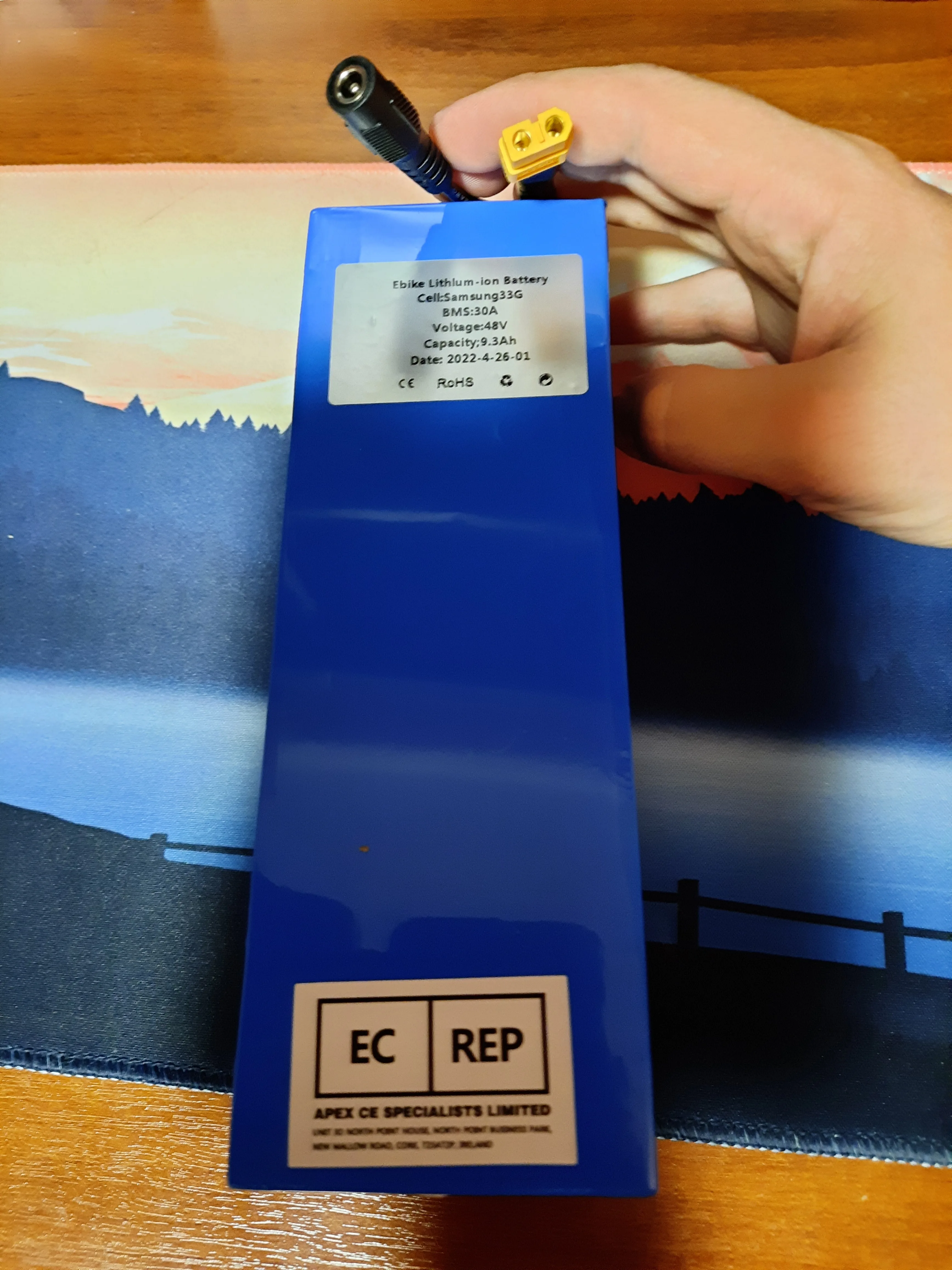 Доставлено быстро. Отправка из России. Тек не отслеживается, но не стоит зацикливаться на этом. Тщательно упаковано, за что спасибо продавцу! Заряд, по прибытии 53 В. Заказан для кастома на кило-ваттном Бафанге, но, для начала, прокрутил на готовом электро-байке EKX 20 . Всё на отлично. Батарея собрана с прокладками из текстолита и плотно затянута в термоусадку. Хорошо промазана герметиком. По моим весам весит 4,6 кг. Доставка СДЕК. Без повреждений. Очень рекомендую и аккумулятор и продавца.Mikhail I. 14 января 2023
