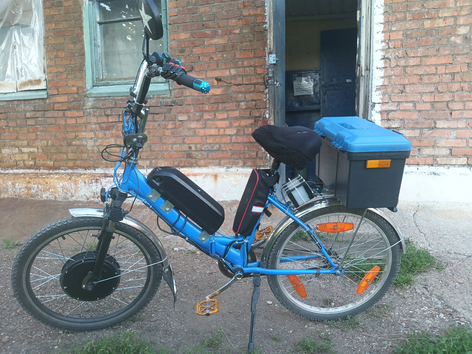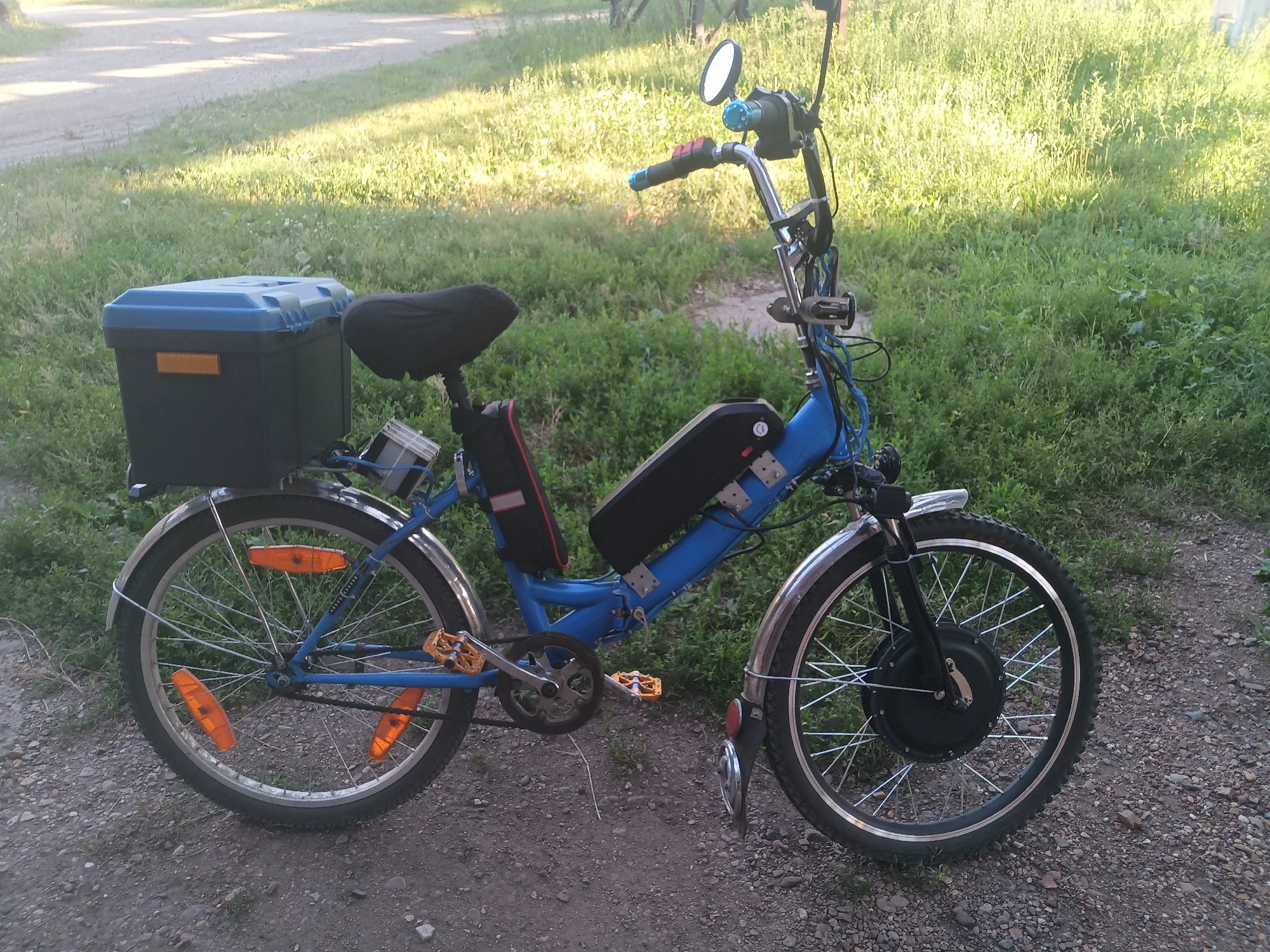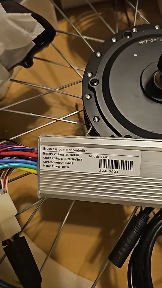Перед заказом у продавца уточнял размер обода,просто на 24" существует несколько размеров : 1) 507мм это современный складной велосипед, 2) 533мм это советский велосипед"Уралец" , 3) 540мм это колесо инвалидной коляски.Кто из РФ на заметку : указана таможенная пошлина на карточке товара,а на самом деле получилось - таможенная пошлина+услуги таможни+комиссия (получилось 1049₽,а в карточке товара чуть больше 300₽).Вес коробки 10,8 кг.Велокомпьютер,его крепление и инструкция для него на англ.яз. были в отдельном запаянном пакете.,через Google-переводчик всё понятно.Герметизировал герметиком-прокладкой обе крышки мотора перед установкой.Пластмассовый большой штекер от мотора не проходил через отверстие сумки контроллера.Пришлось отрезать штекер,поместить его во внутрь сумки,присоединив к контроллеру,а затем просунуть кабель от мотора и припаять 5 отрезанных проводов.ВНИМАНИЕ ! Контроллер на мощность колеса 1500W пришёл без штекера питания XT60,перед заказом уточните у продавца.Пришлось половину дня потратить,бегая по всему своему городу чтобы найти такой штекер,а затем паять.Протестировал скорости при поездке: на режиме скорости 1 - скорость 24-28км/ч (зависит от рельефа дороги и встречного ветра), на режиме скорости 2 - 33-37км/ч, на режиме 3 - 40-44км/ч.Режимы 4 и 5 не пробовал,боюсь вылететь с дороги.Давал попробовать приятелям прокатиться,после прокатки все впечатлены мощностью колеса и разговора на целый день.Единственный минус : велосипед стал тяжёлым и поднимать по этажам это мучения для моей спины.А всё остальное только кайф от езды испытываешь !!! Спасибо !!!