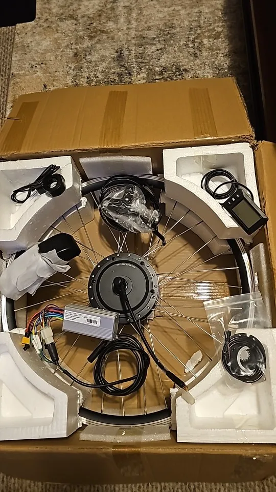 Простая установка Комплект для переоборудования электронного велосипеда Включает в себя все необходимые компоненты для установки, моторное колесо, контроллер, дисплей, дроссельную заслонку, тормозные рычаги, PAS.