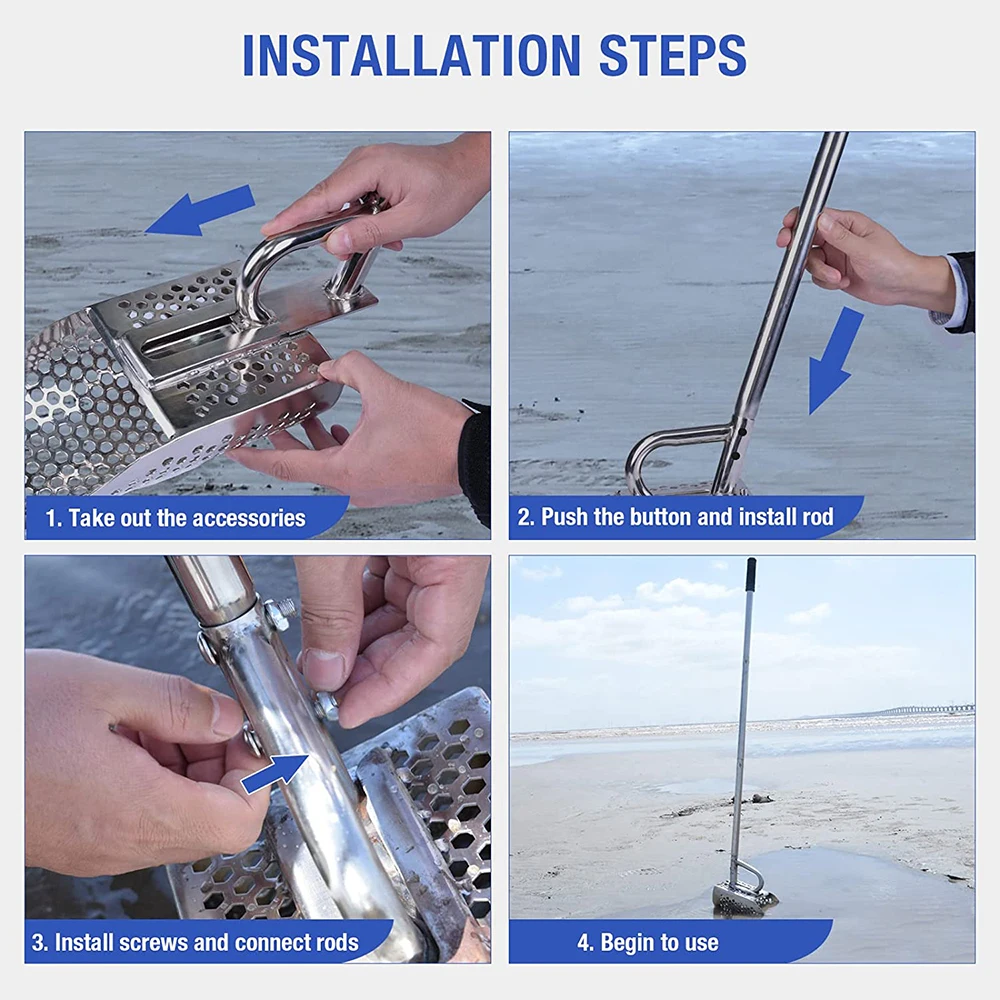 Съемный ручной дизайн: специальный съемный, и мы можем снять ручной или добавить удлиненный столб для ручки для использования в положении стоя. Усовершенствованный дизайн: уникальный внешний вид, а его ручка более гибкая, поэтому она более экономична при просеивании. Передняя овальная форма лопаты экономит усилия при гребке и лучше снижает сопротивление.