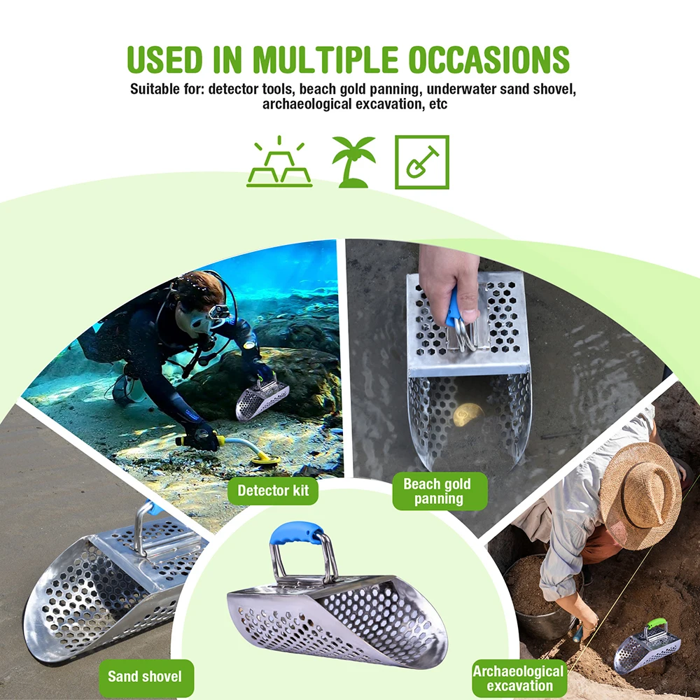 Многофункциональный совок для песка: профессиональная Лопата для обнаружения металла, прочная и долговечная. Подходит как профессиональным исследователям, так и новичкам в исследовании пляжей. Вы можете использовать его в качестве детекторов, пляжного панорамирования золота, подводной песочной лопаты, археологических раскопок и т. Д.