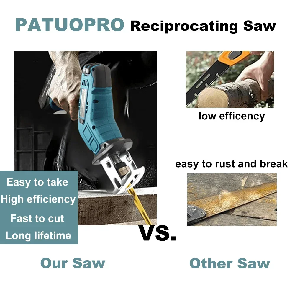 - Простая установка и многоцелевой - Вставьте аккумулятор и лезвие и начните использовать его без каких-либо других инструментов для установки;Конструкция домкрата позволяет быстро менять лезвие;Батарея сабельной пилы внутри обеспечивает скорость холостого хода 0 3000 об/мин для прочной, контролируемой и быстрой резки древесины, труб и металлов.