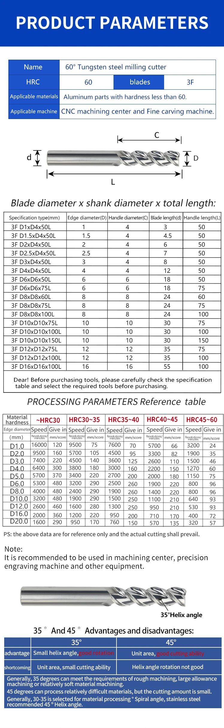 Концевые фрезы KCUTEER D1~D16 3F HRC60 для алюминия