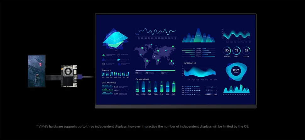 Новый VIM4 SBC выходит за рамки того, что должны предложить наши оригинальные модели VIM.Он имеет встроенный входной порт micro HDMI для интеллектуального отображения и приложений для видеоконференций.Четыре выхода дисплея HDMI (HDMI, MIPI-DSI, V-by-One и eDP) означает, что вы можете подключать до 3 дисплеев одновременно (включая сенсорный) без необходимости использования дорогостоящих адаптеров и пользовательских плат.