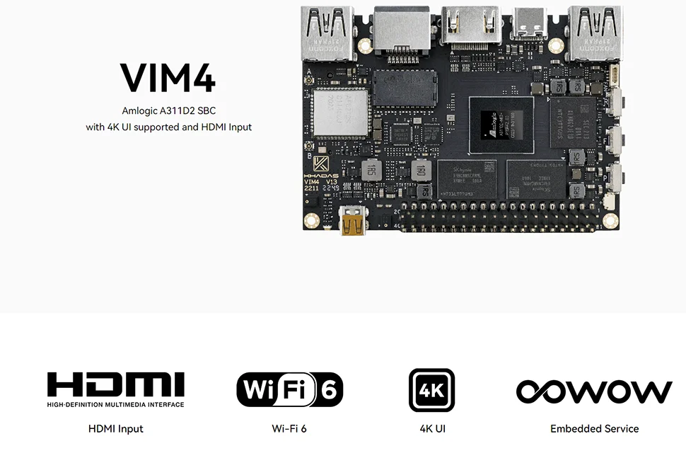 OOWOW это автономная встраиваемая услуга для бесперебойной онлайн-доставки ОС, обслуживания устройств и многого другого!OOWOW разработан и поддерживается командой Ханд.VIM4 это первый одноплатный компьютер Khadas, встроенный в систему OOWOWOW.