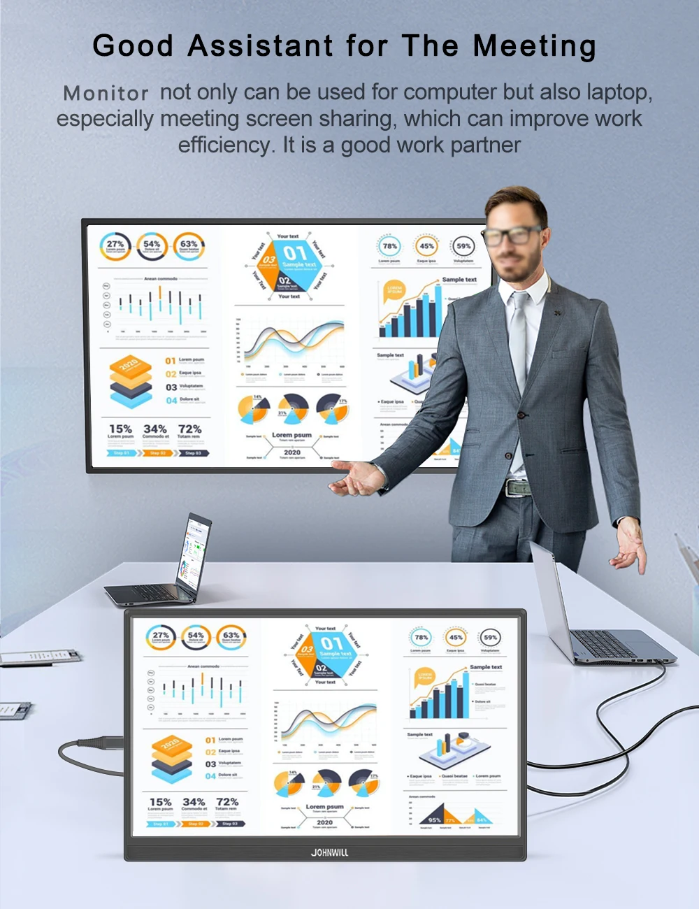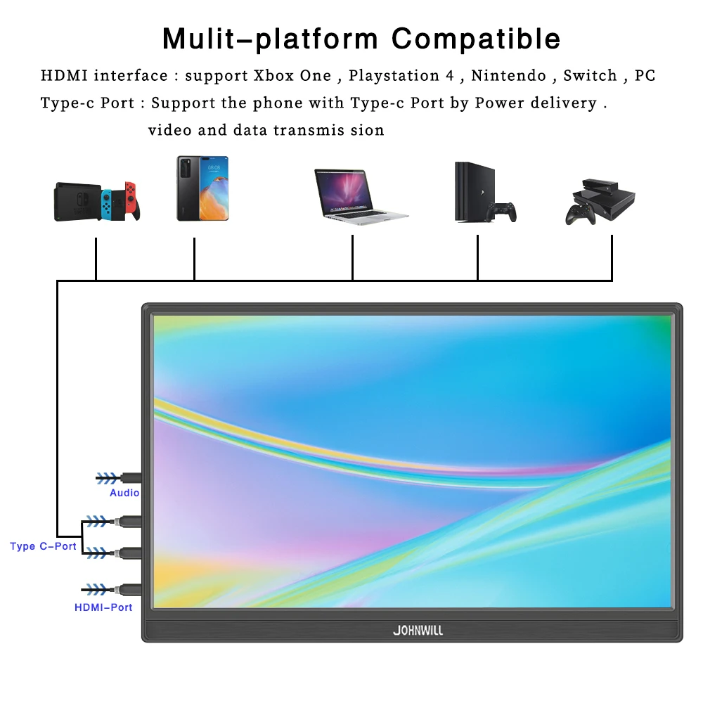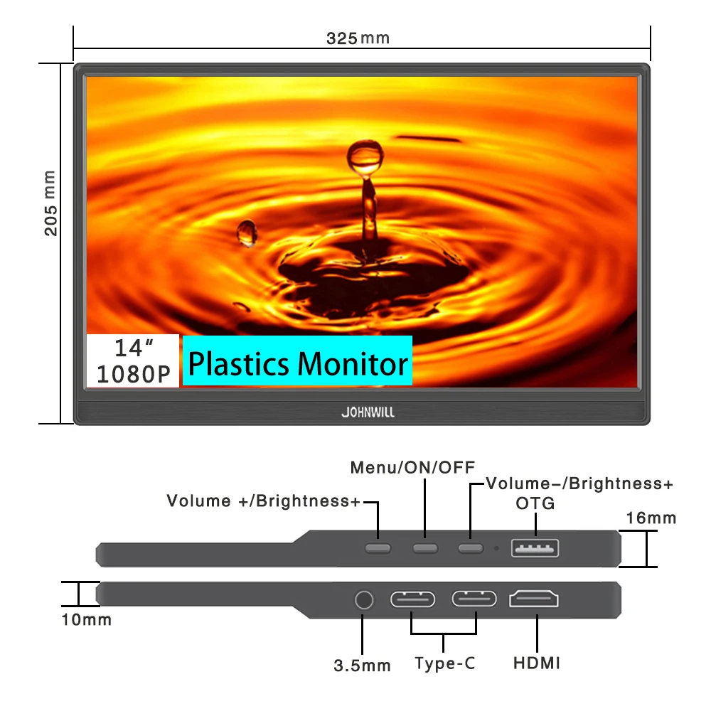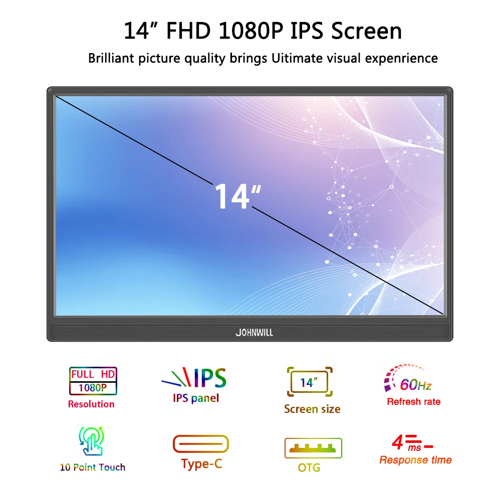 JOHNWILL Портативный сенсорный монитор 14 дюймов