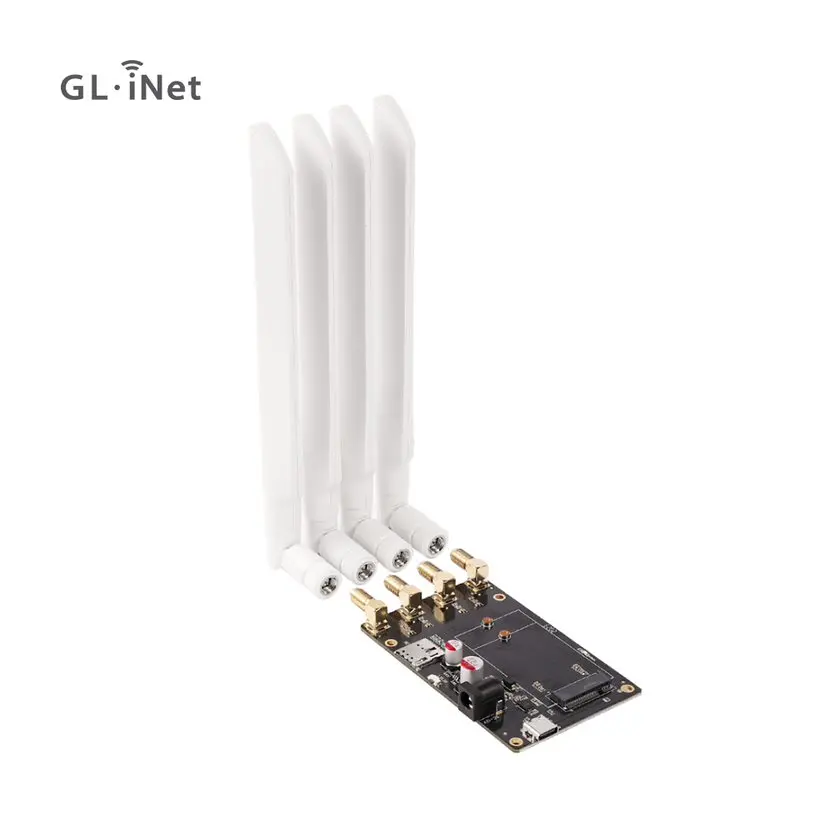 Плата разработки M2 легко интегрируется с дорожным маршрутизатором GL.iNet*, что упрощает установку.Просто прикрепите плату к маршрутизатору, и вы готовы ощутить мощность подключения 5G.