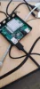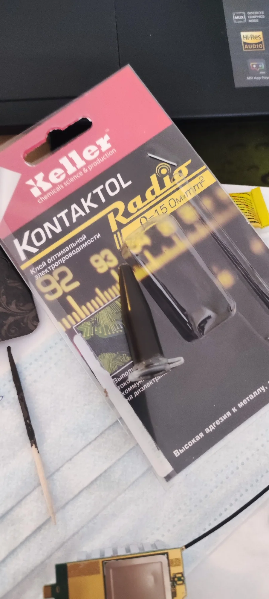 Все завелось. Один контакт изолировал, два других соединил клеем токопроводящим, прошивку обновил. По шустрей, этот модем, чем 968й. Вообще не греется. Внутри под крышкой есть термопрокладка, которая все элементы покрывает. Все равно поставил радиатор. Посадил на термопасту, по краям капнул супер клеем. И покрыл шов изоляционным лаком. Лак ещё добавил теплопроводности. В общем вот такой бутерброд получился. Этикетку снял.
