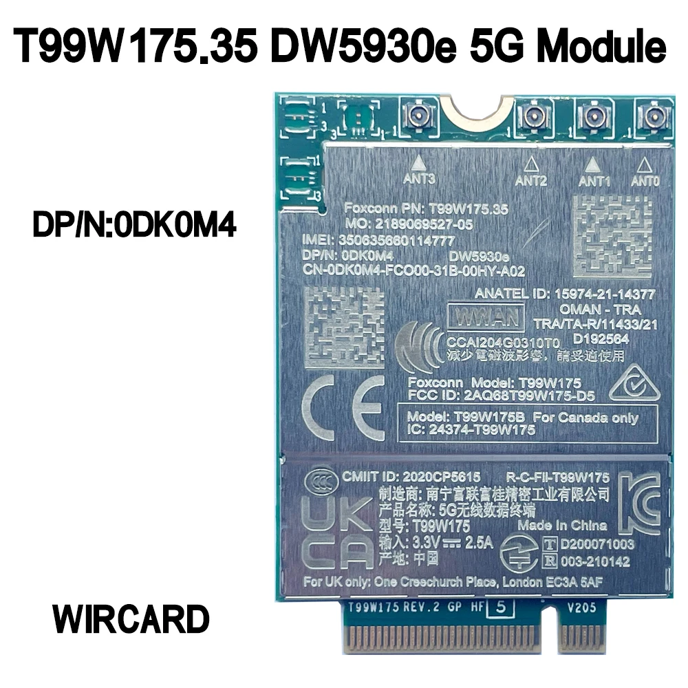 T99W175 DW5930e X55 5G Module DP/N 01TFY5 For Dell Laptop Latitude 5430 7330...