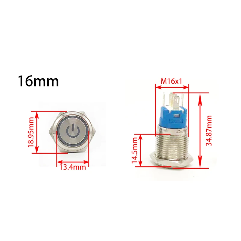 Metal Push Button Start Stop Power On/Off 5/12/220V Led Backlit Connected...