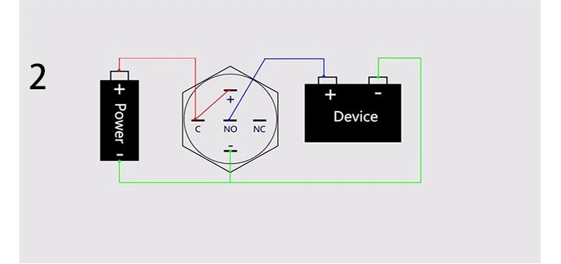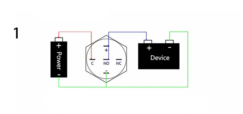 1.Connect " NO " and " C " : The circuit is alway open unless press the button.