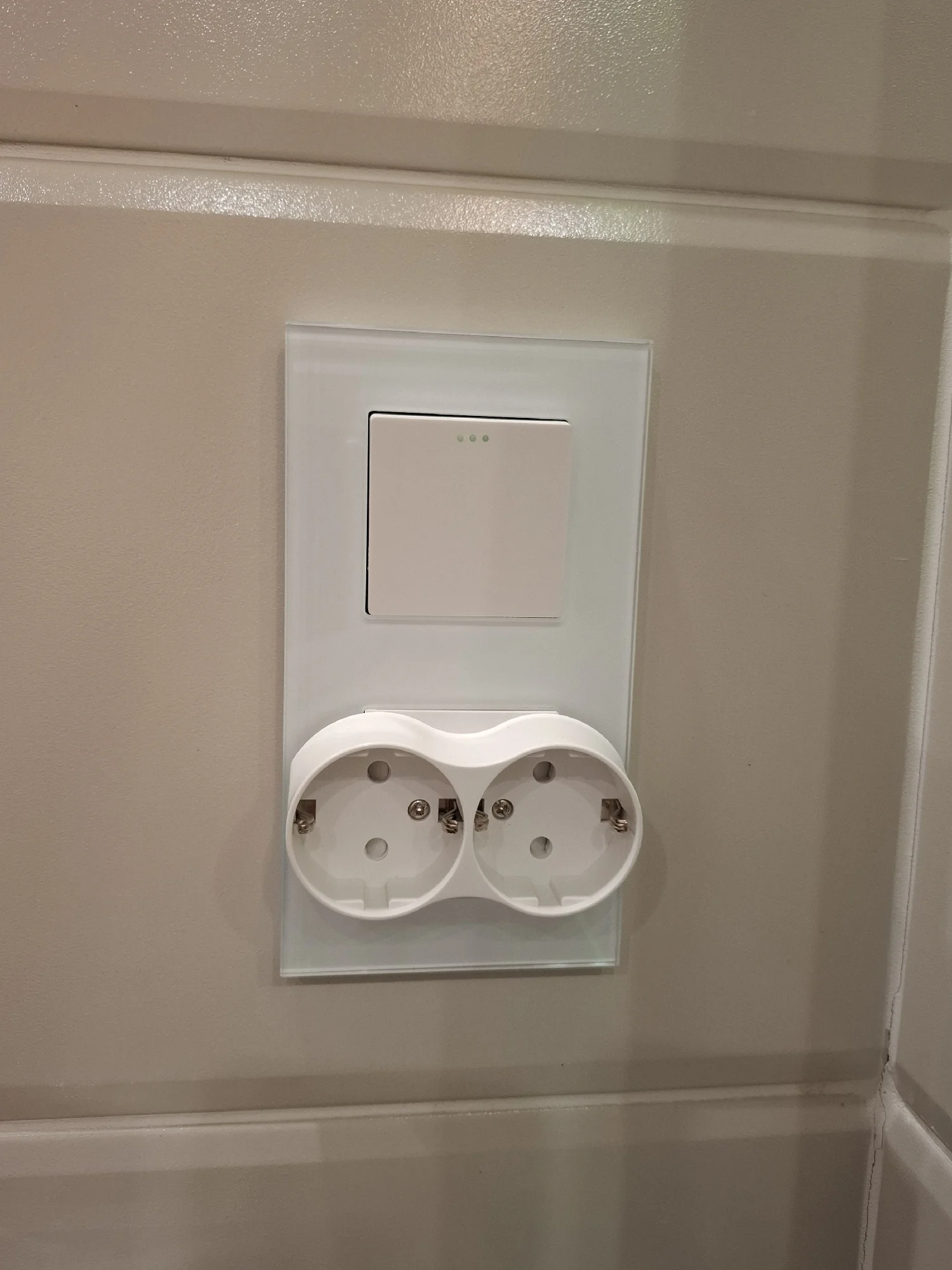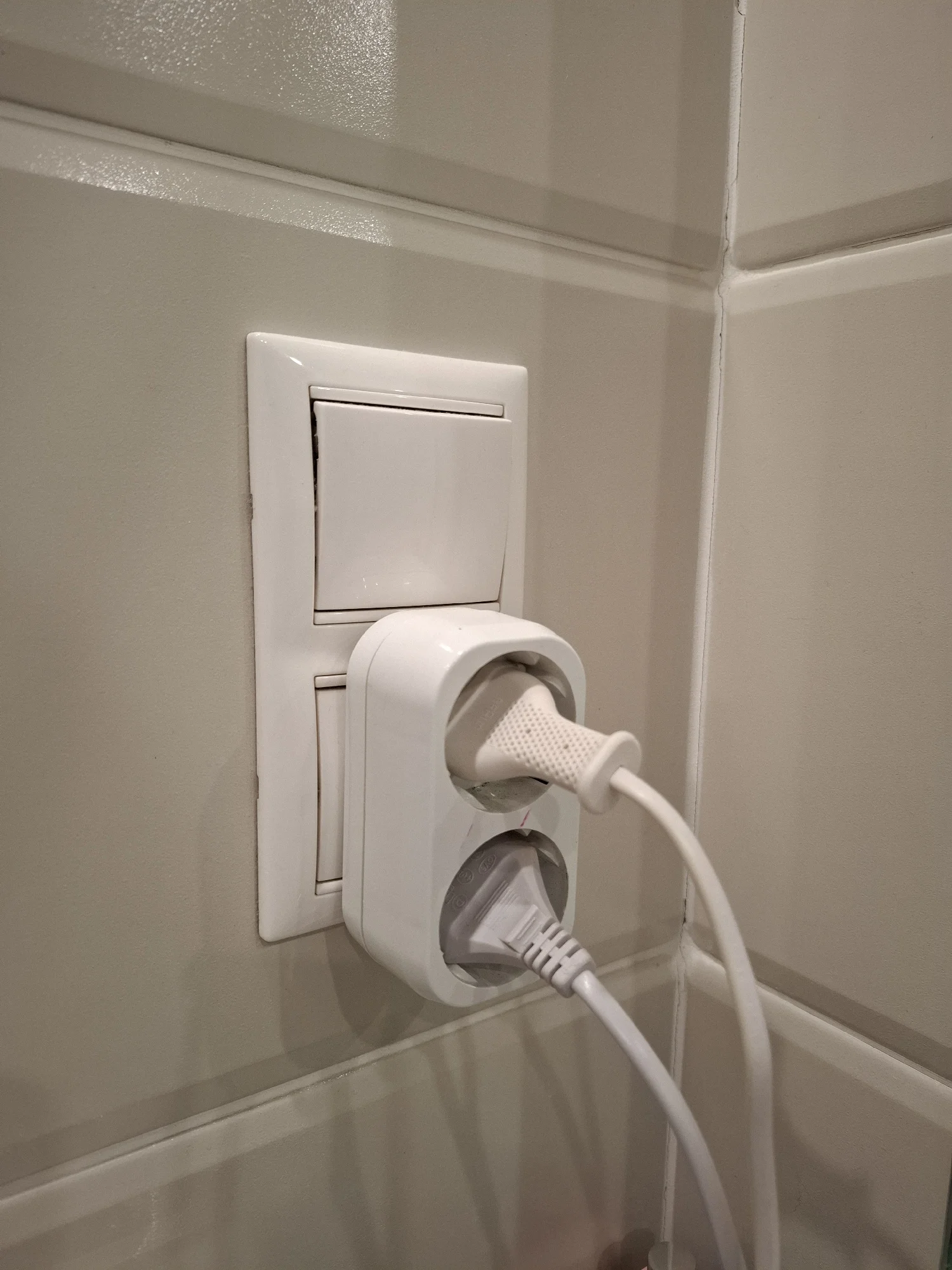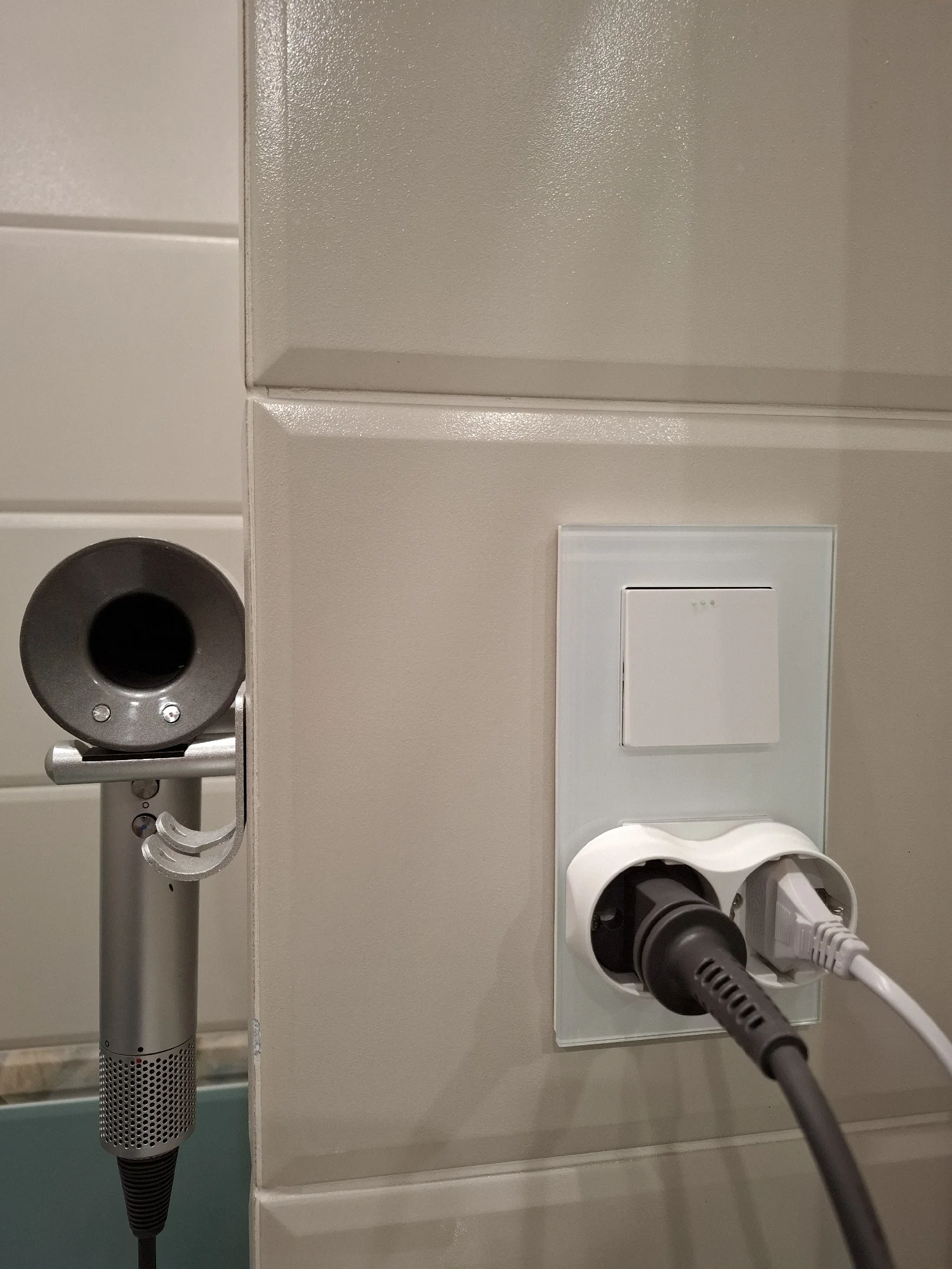 Удобное решение, если не хочется устанавливать дополнительную коробку под стандартную розетку. Изначально был блок выключатель+розетка, но их не хватало для подключения бытовых приборов в ванной комнате. Фото было и стало.