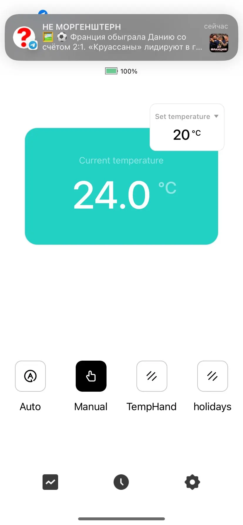 4. Программируемый расписание с выбором еженедельного программирования:Поддерживает ручную настройку 5+2 еженедельного расписания с 4 периодами на выбор, предоставляя вам максимальное удобство для различных ситуаций и настройку индивидуального расписания температуры вашего дома.Для дополнительного удобства доступны режим отпуска, автоматический режим, ручной режим и ручной режим;Энергосбережение в реальном смысле благодаря наконечнику с низким уровнем заряда батареи и поддержке эко-режима.