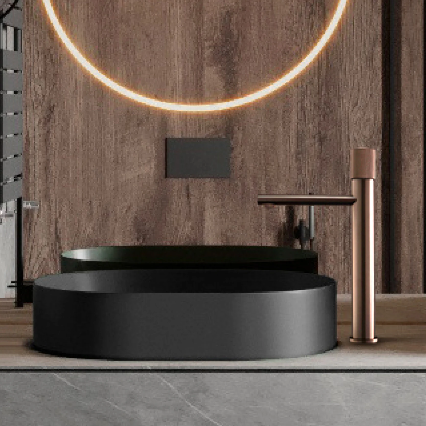Brass black bathroom faucet round hand washing toilet table under high-end...