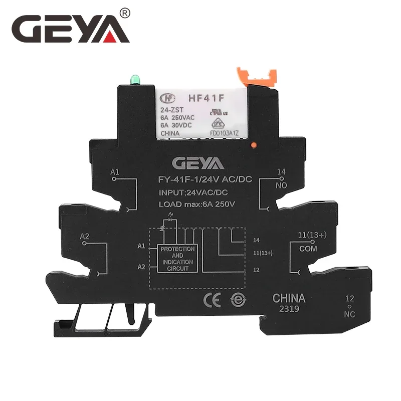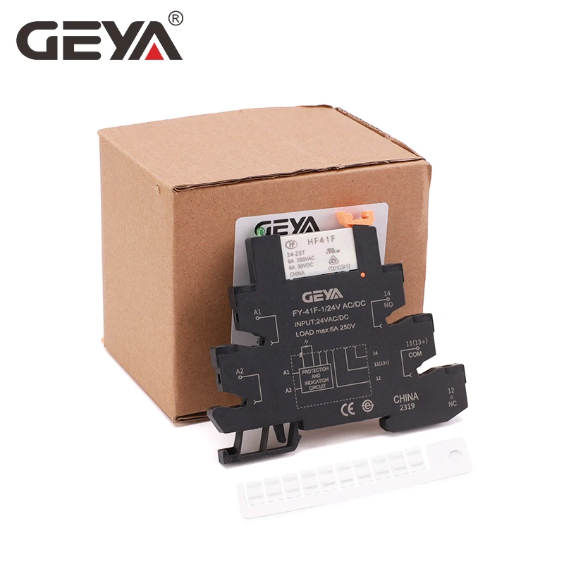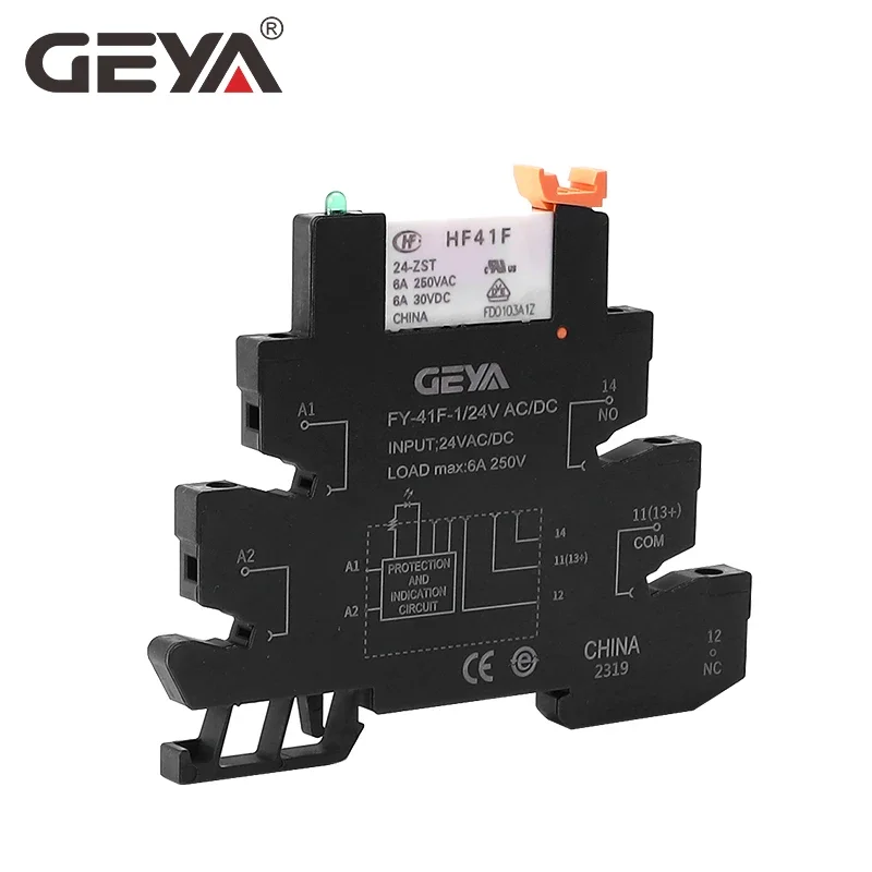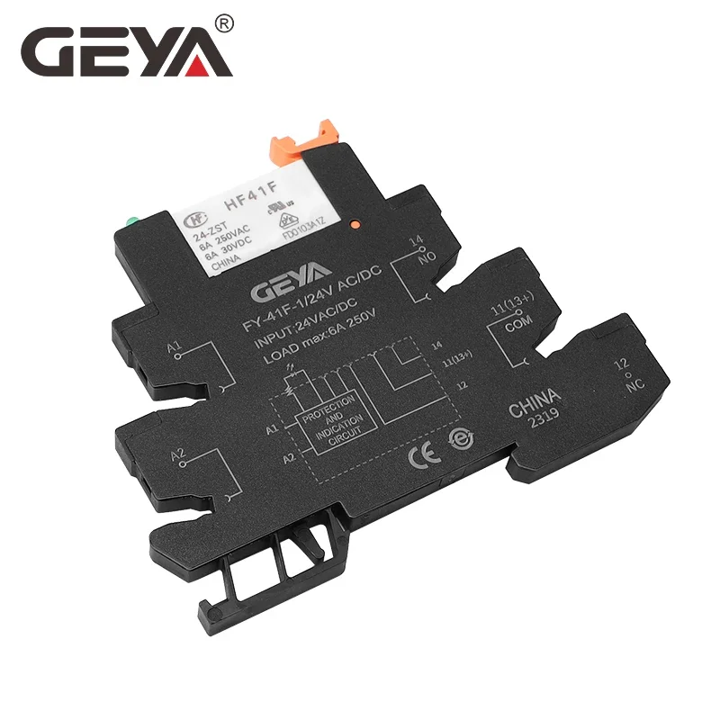 10 шт., тонкий релейный модуль GEYA Din Rail HF-41F, встроенное силовое реле для монтажа на печатную плату с держателем реле 12 В 24 В 48 В 60 В 110 В 230 В 6,2 мм