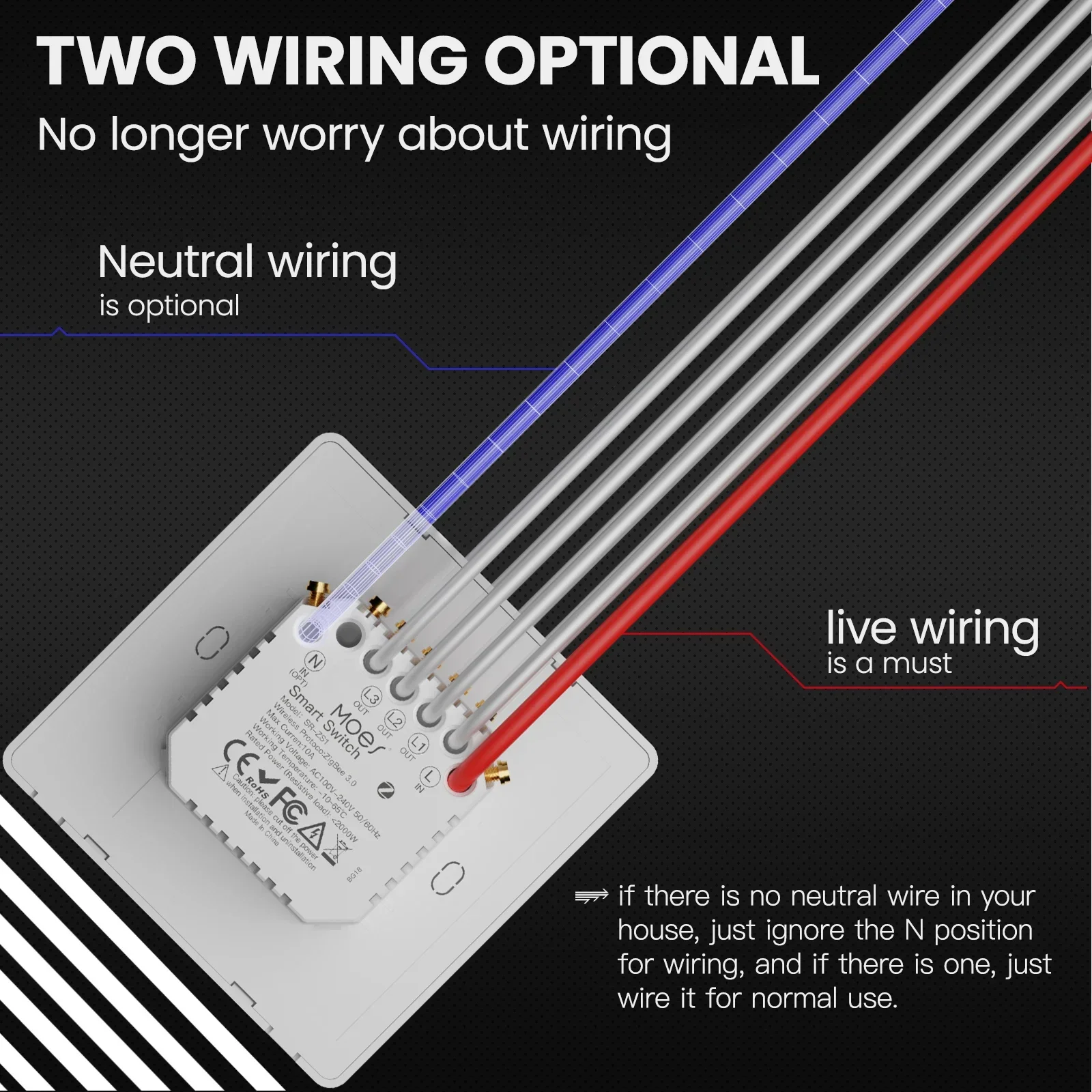 4. Модульная сборка для индивидуальной комбинации :1/2/3/4 Gang Star Ring интеллектуальный переключатель опционально с панелью переключателей 2/3/4 Gang подобраны для простой сборки в соответствии с вашими потребностями, легко превращая интеллектуальный переключатель в переключатель сцен в приложении Tuya Smar для управления сценой на домашних интеллектуальных устройствах;Два способа подключения опционально: установлены один провод под напряжением, если в вашем доме нет нейтрального провода или с проводными линиями N+L.