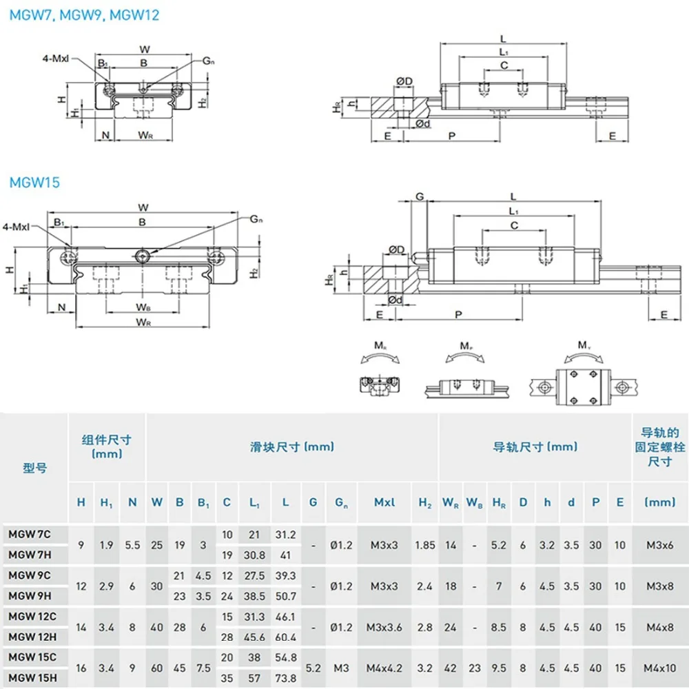 MGW7 MGW9 MGW12 MGW15 200 300 350 400 450 500 600 700 800 мм MGW линейный рельс...