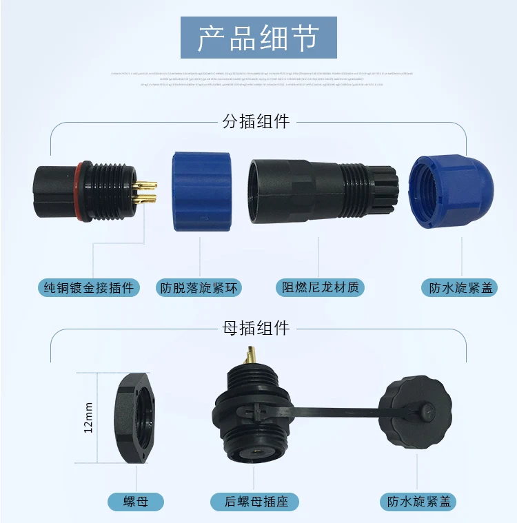 Waterproof connector aviation plug male and female rear nut socket connector...