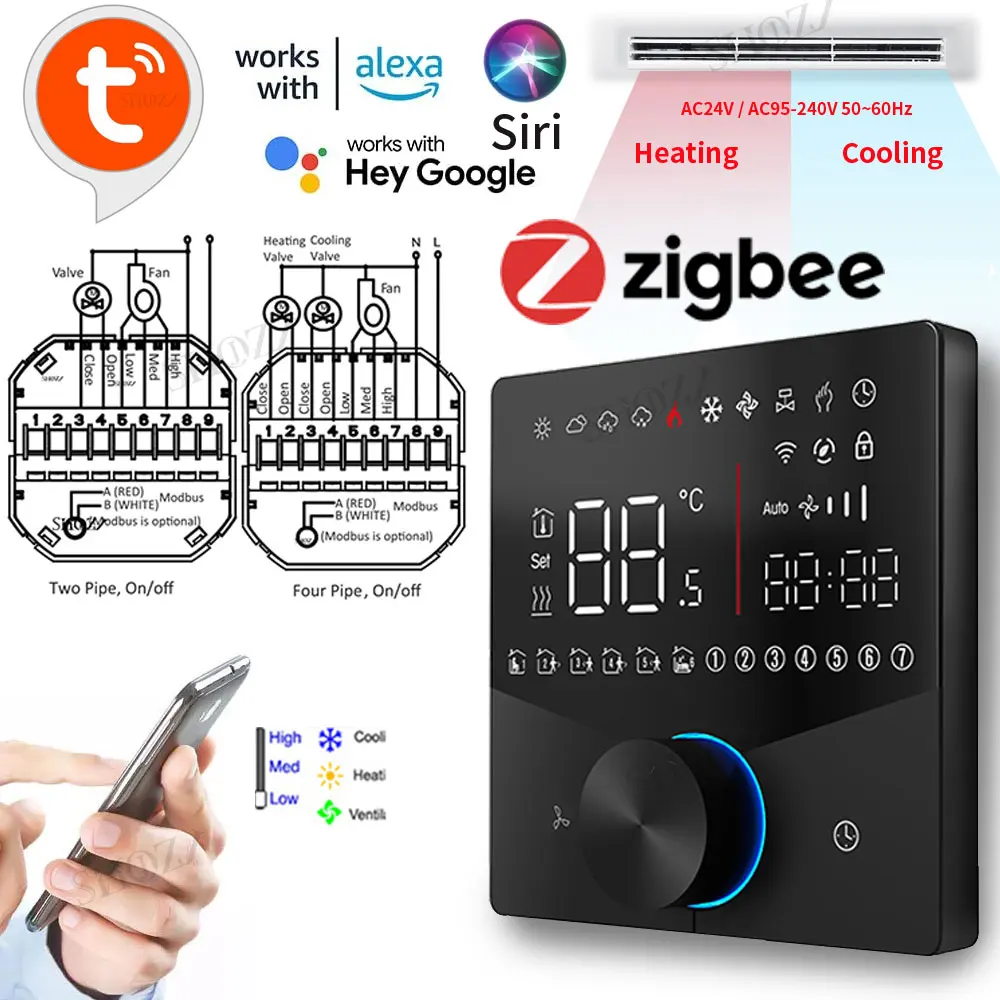 2 трубы 4 трубы Wi-Fi/zigbee умный центральный кондиционер термостат 3-скоростной фанкойл беспроводной пульт дистанционного голосового управления Tuya умный регулятор температуры жизни работа с Alexa Google Assistant