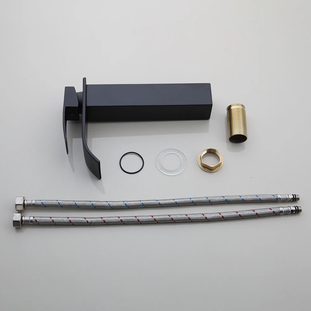 KEMAIDI Bathroom Basin Sink Faucet Combo Tempered Glass Waterfall Faucets Black...