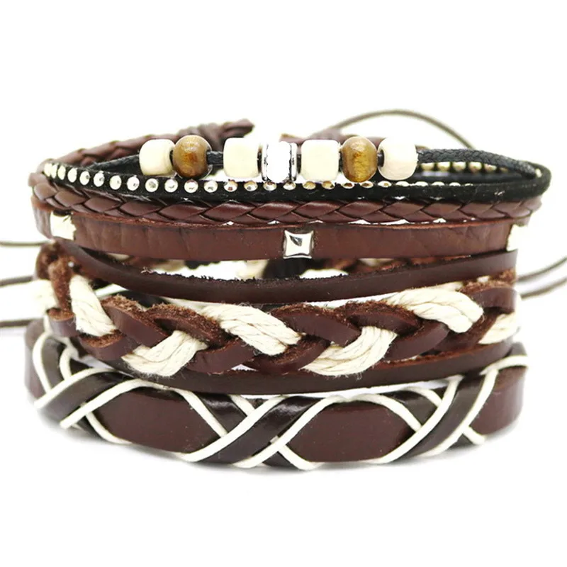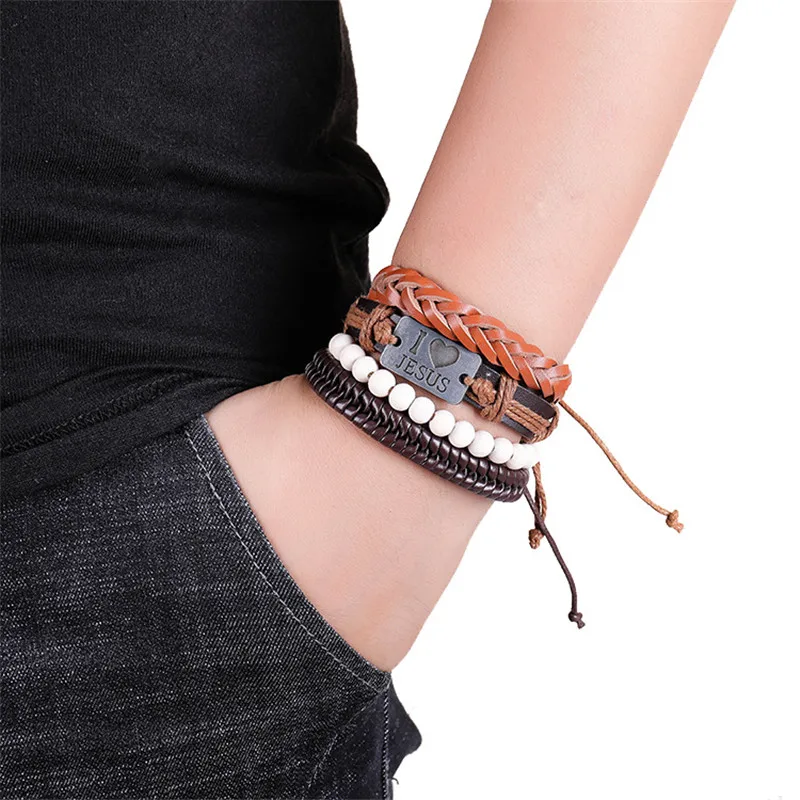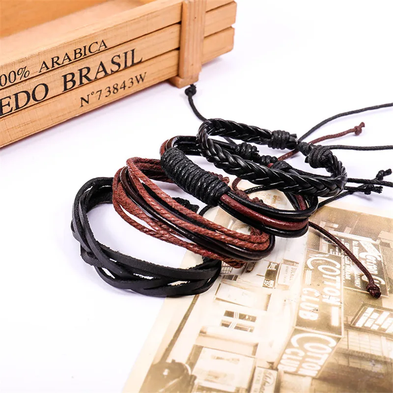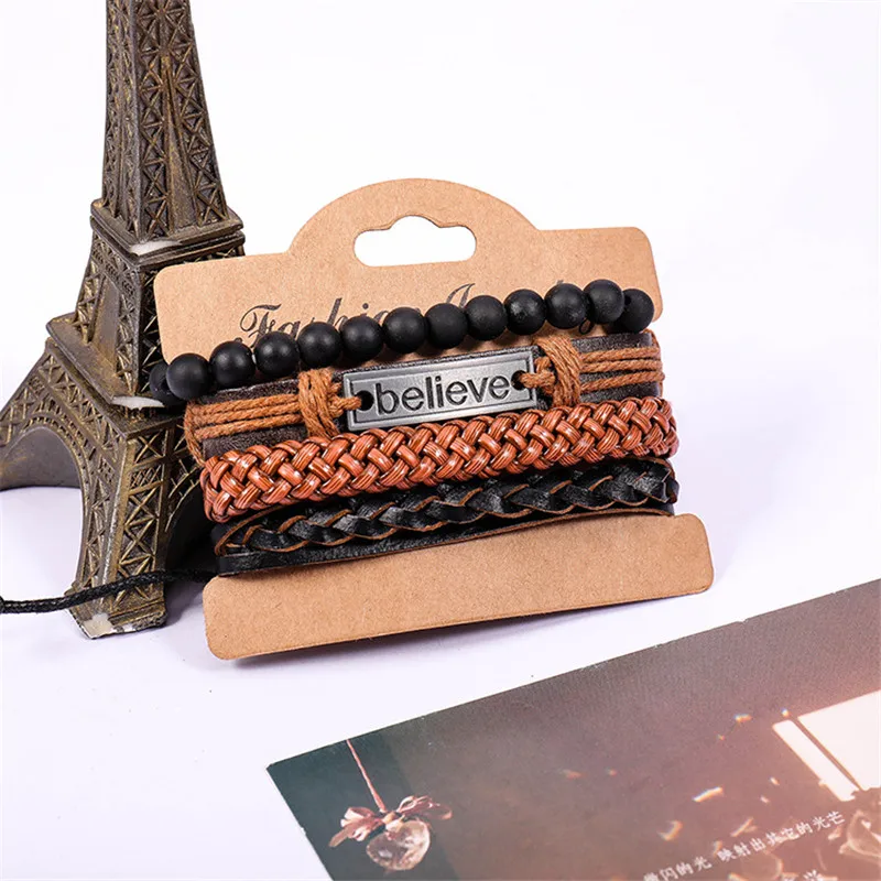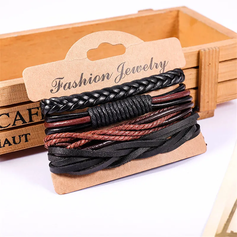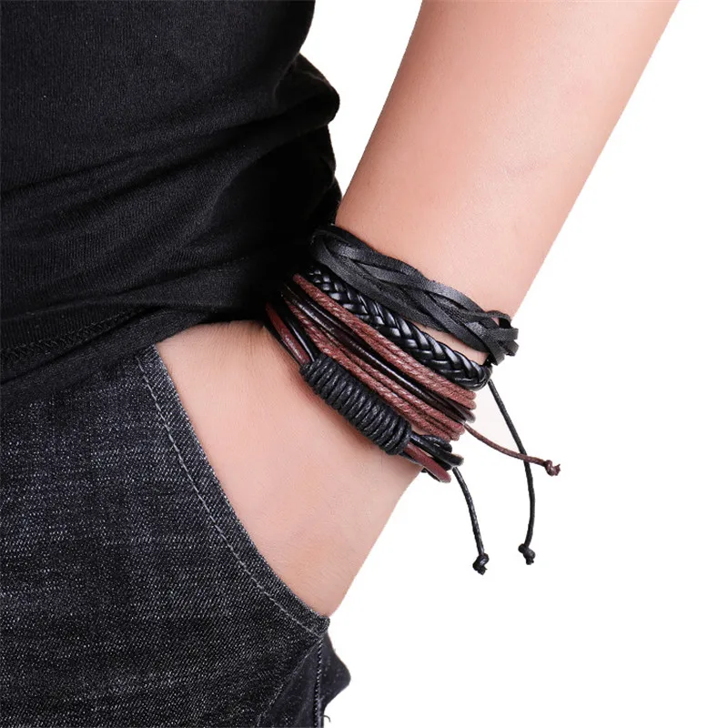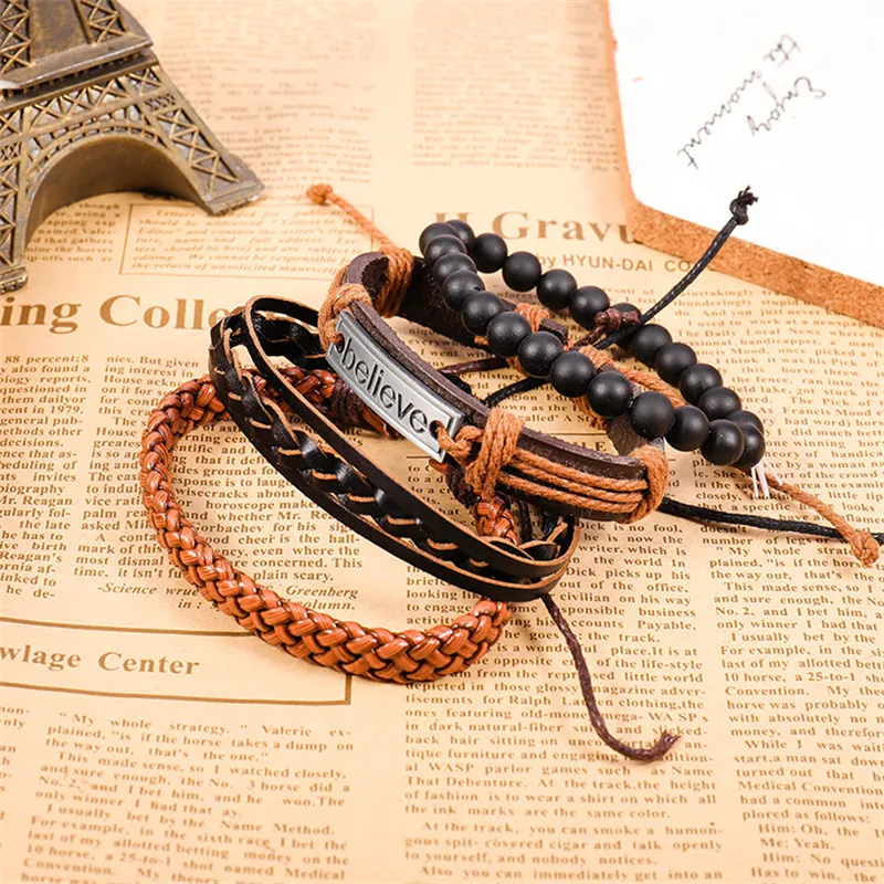 1 комплект 3/4 шт. микс кожаный браслет Для мужчин многослойный браслет в стиле...