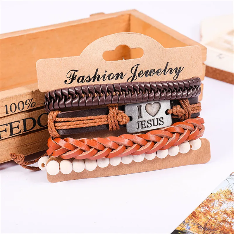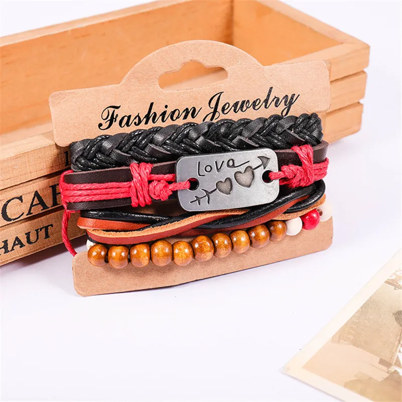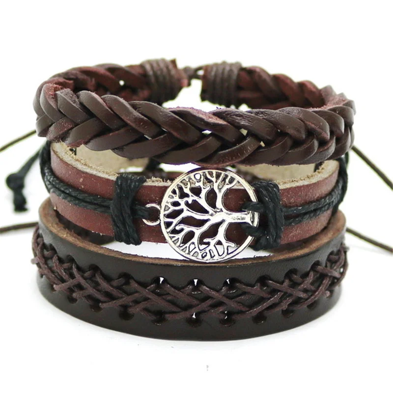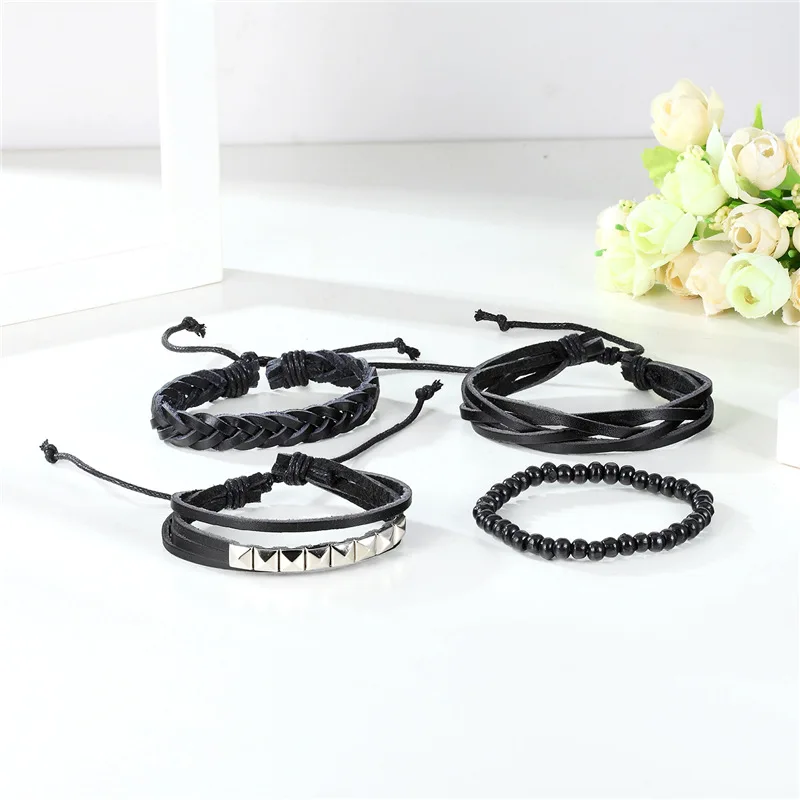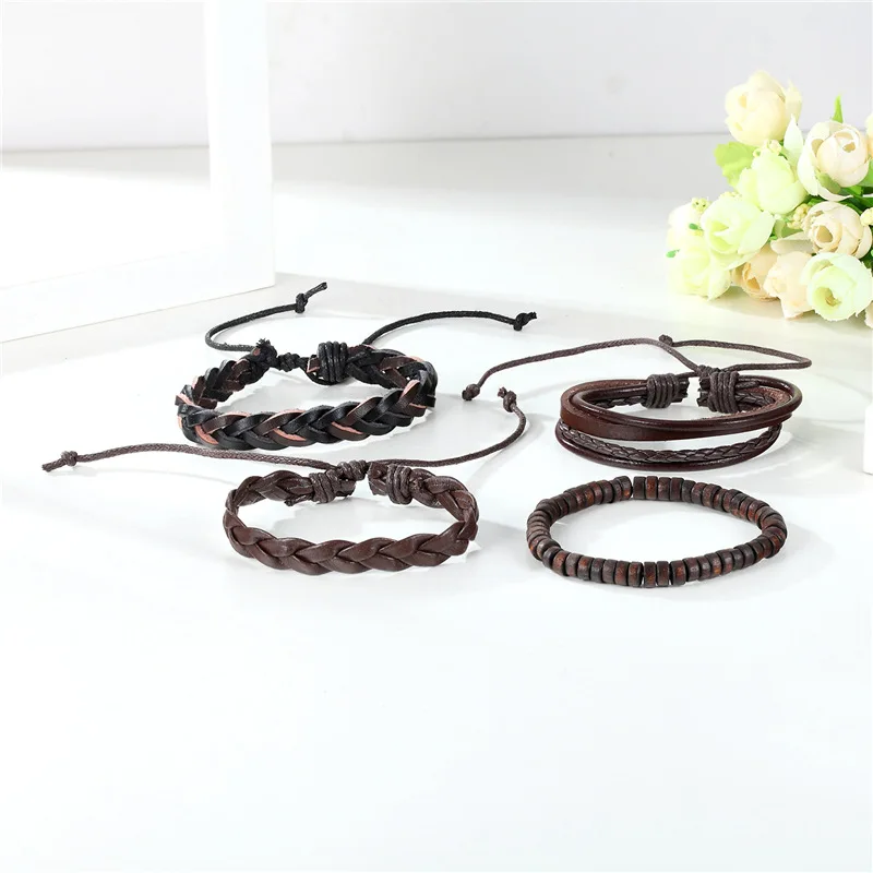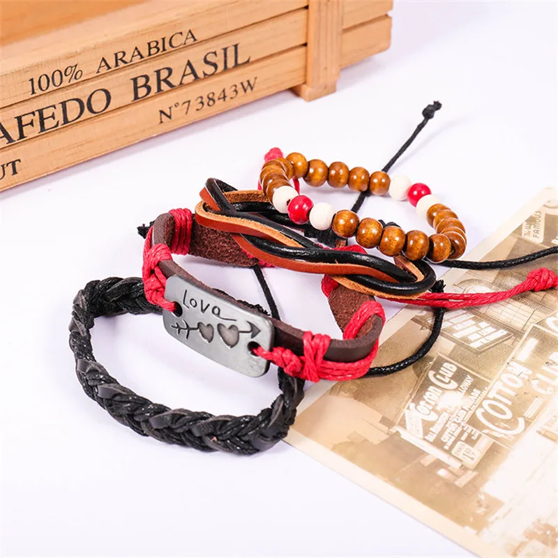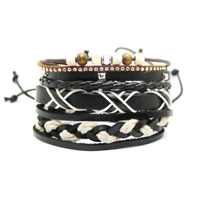 1 комплект 3/4 шт. микс кожаный браслет Для мужчин многослойный браслет в стиле...