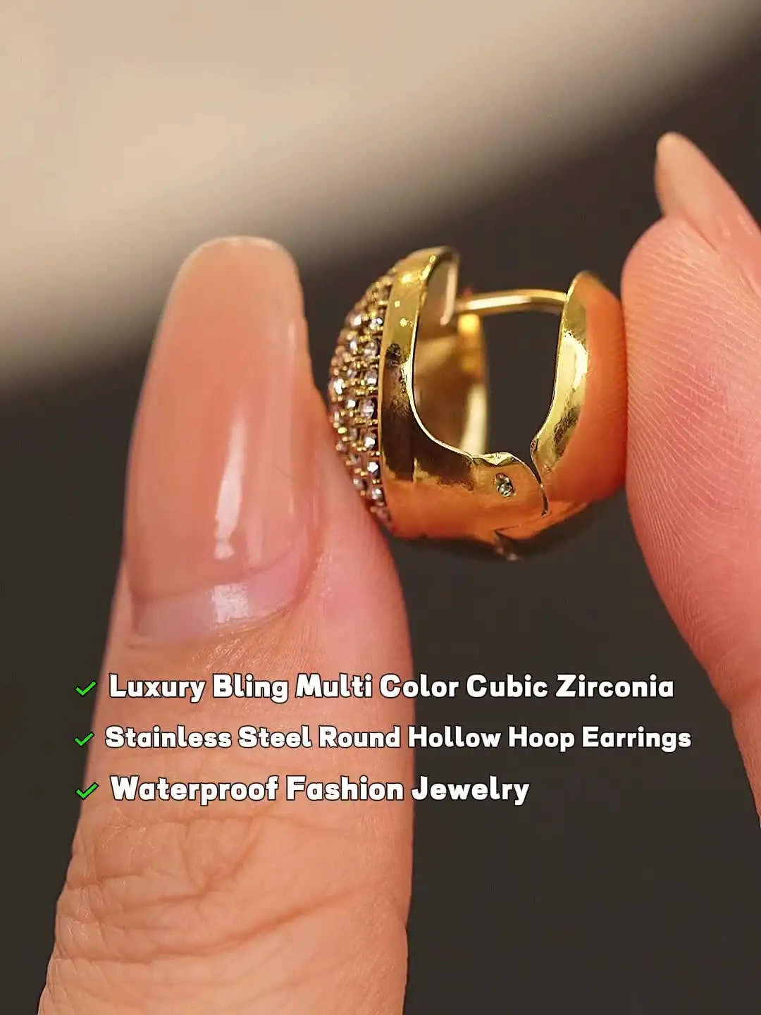 Yhpup Luxury Bling Multi Color Cubic Zirconia Stainless Steel Round Hollow Hoop...